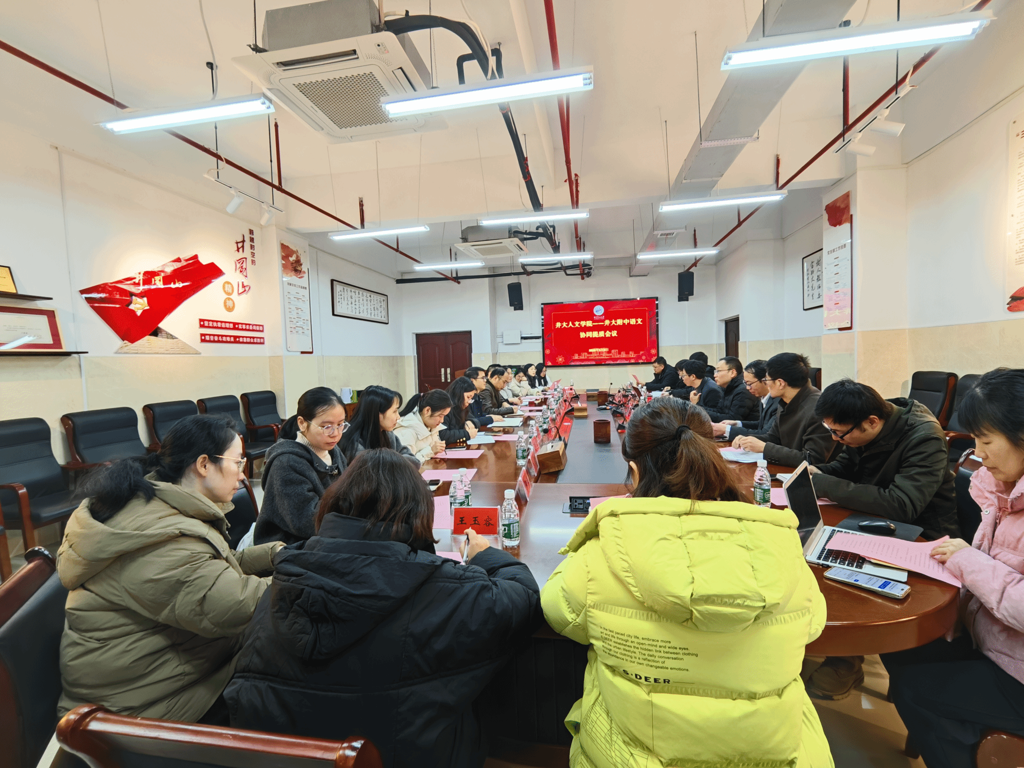 2026年1月4日下午,井冈山大学人文学院与井大附中协同提质会议在人文学院112会议室顺利召开。会议由人文学院院长龚奎林教授主持,双方单位相关负责人及教师代表共30余人参会,围绕语文与历史教学合作、师范生实习、课程共建等议题展开深入交流。