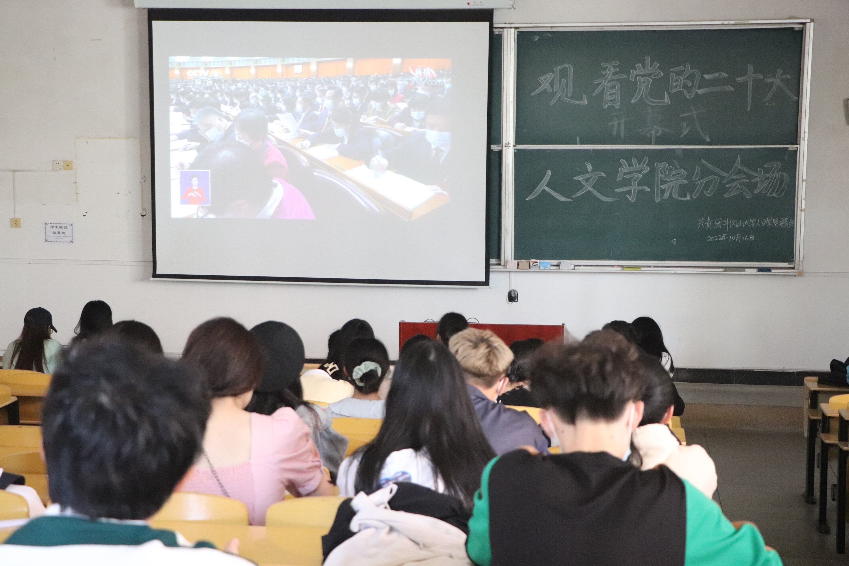 喜迎二十大,筑梦新征程。10月16日上午,人文学院党委组织全院师生收听收看了中国共产党第二十次全国代表大会开幕会。学院党委书记康永及领导班子成员、师生党员和入党积极分子代表于5栋314集中收看,各班团支书及团员代表于5栋205集中收看,其余师生通过各种方式自行收听收看。