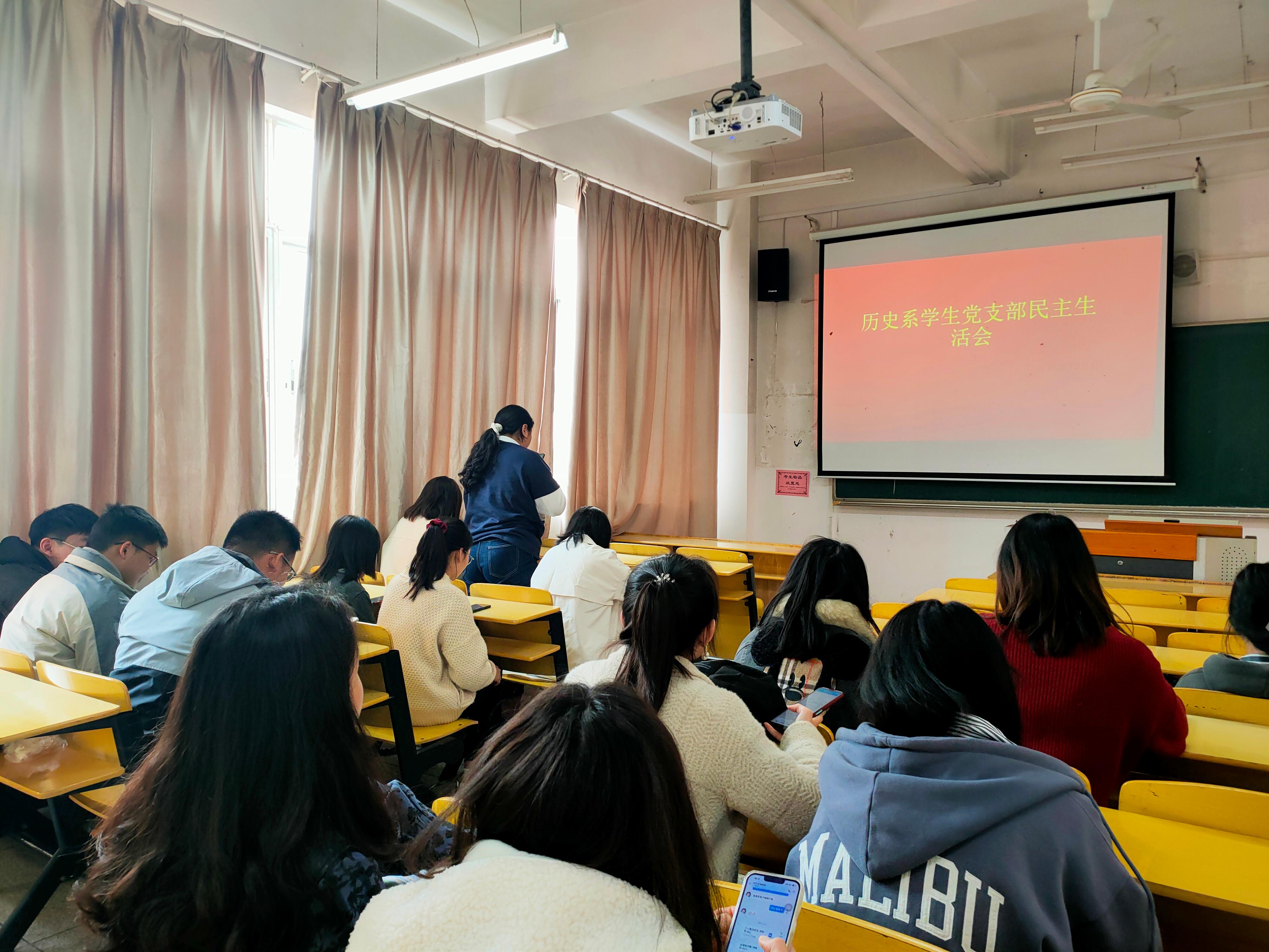 按照党委《关于召开2021年度基层党组织生活会和开展民主评议党员的通知》要求,2022年3月3日下午,历史系学生党支部在五栋106教室召开了专题组织生活会。会议由支部书记戴梦雅主持,历史系学生党支部全体党员出席会议。