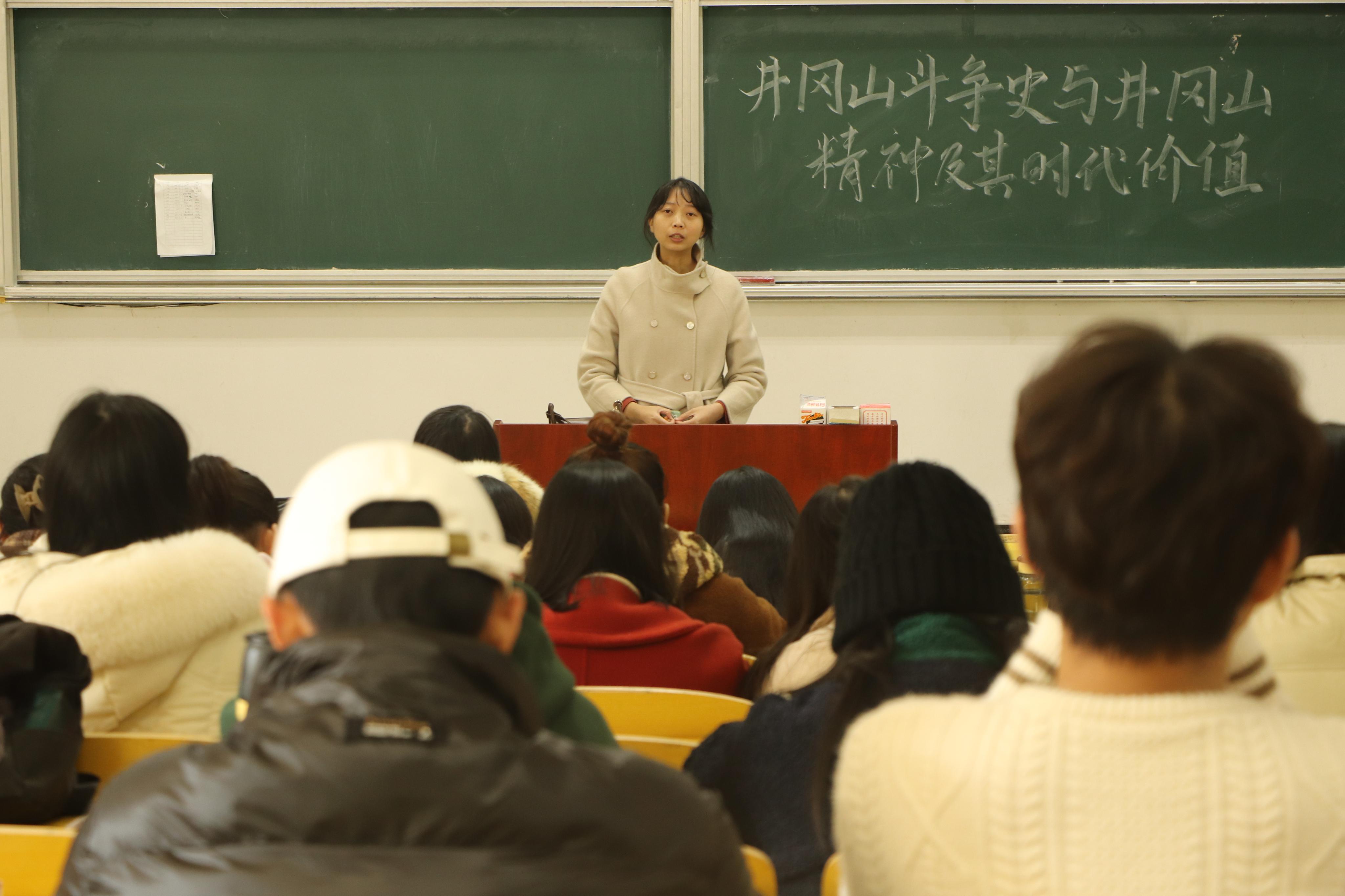 本次课程主要深入讲解了井冈山革命斗争的重要性和历史价值,意在提高学生们的思想道德素质和政治理论水平,牢固树立共产主义理想信念,端正入党动机,确保发展党员的纯洁性、先进性。相信通过这次讲课,学生们将会从井冈山精神中获取新的力量,产生新的思考。最后,在同学们热烈的掌声中,此次活动正式结束。(熊心怡,黄欢)