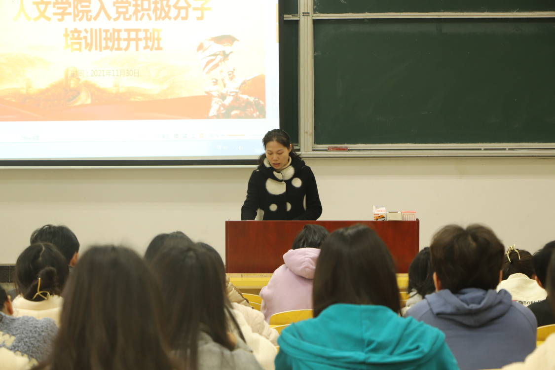 11月30日12时20分,人文学院分党校入党积极分子培训班开班仪式在5栋105教室举行,开班仪式由人文学院党委副书记张华主持,全体2021年下半年确立的入党积极分子参加培训。