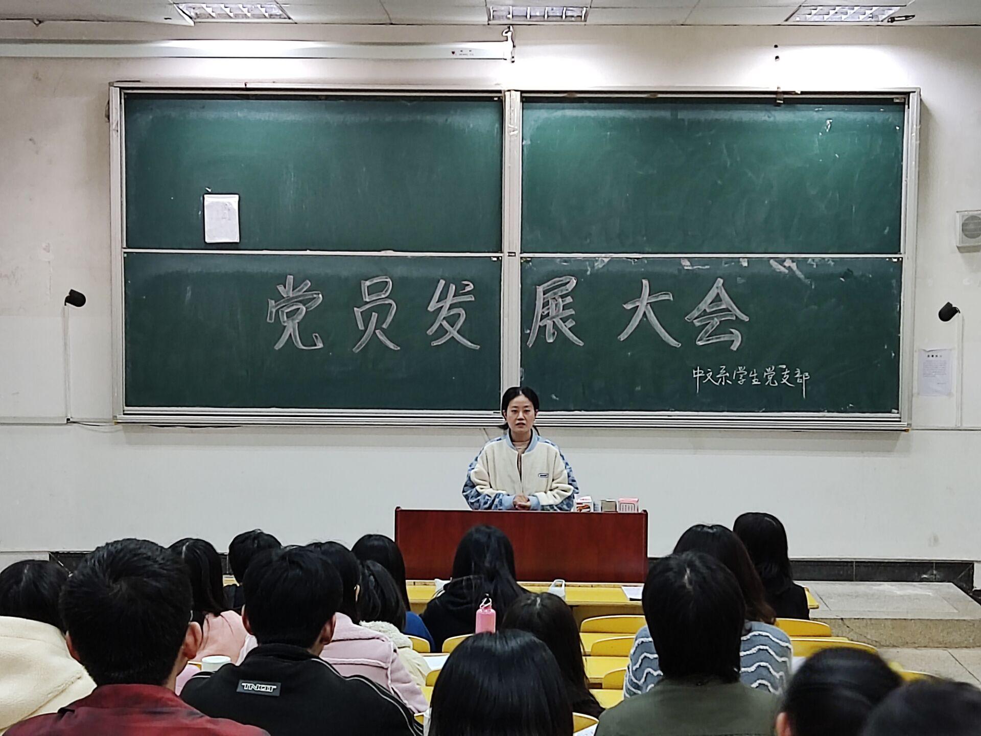 12月9日,中文系学生党支部于5栋105教室召开了党员发展大会。会议由支部书记陈灵婧主持。
