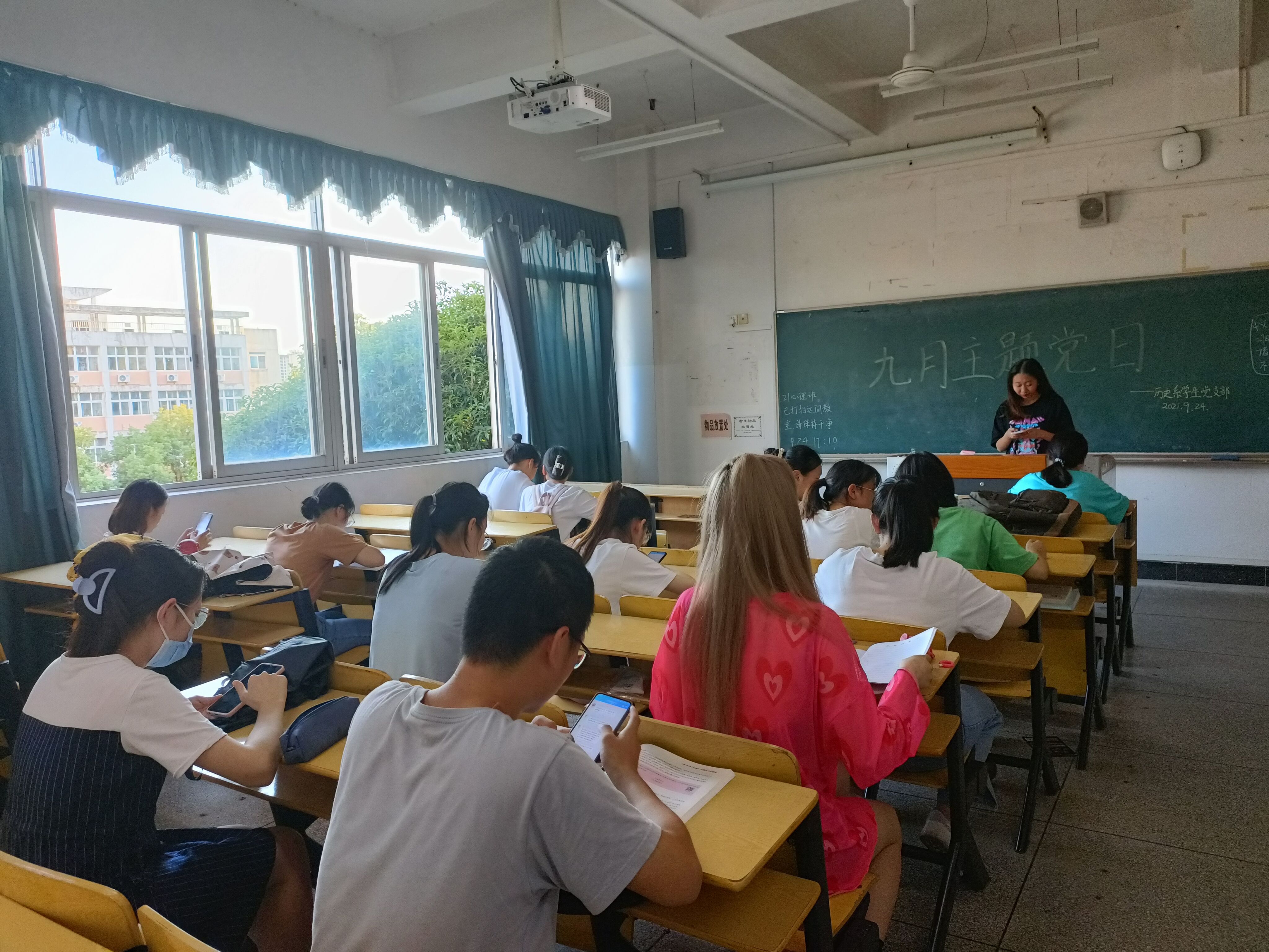 9月24日,历史系学生党支部在5栋108教室开展主题党日活动。本次活动围绕着“牢记初心使命,赓续精神血脉——深入学习贯彻习近平总书记‘七一’重要讲话精神”的主题展开,历史系在校学生党员参加并进行发言。