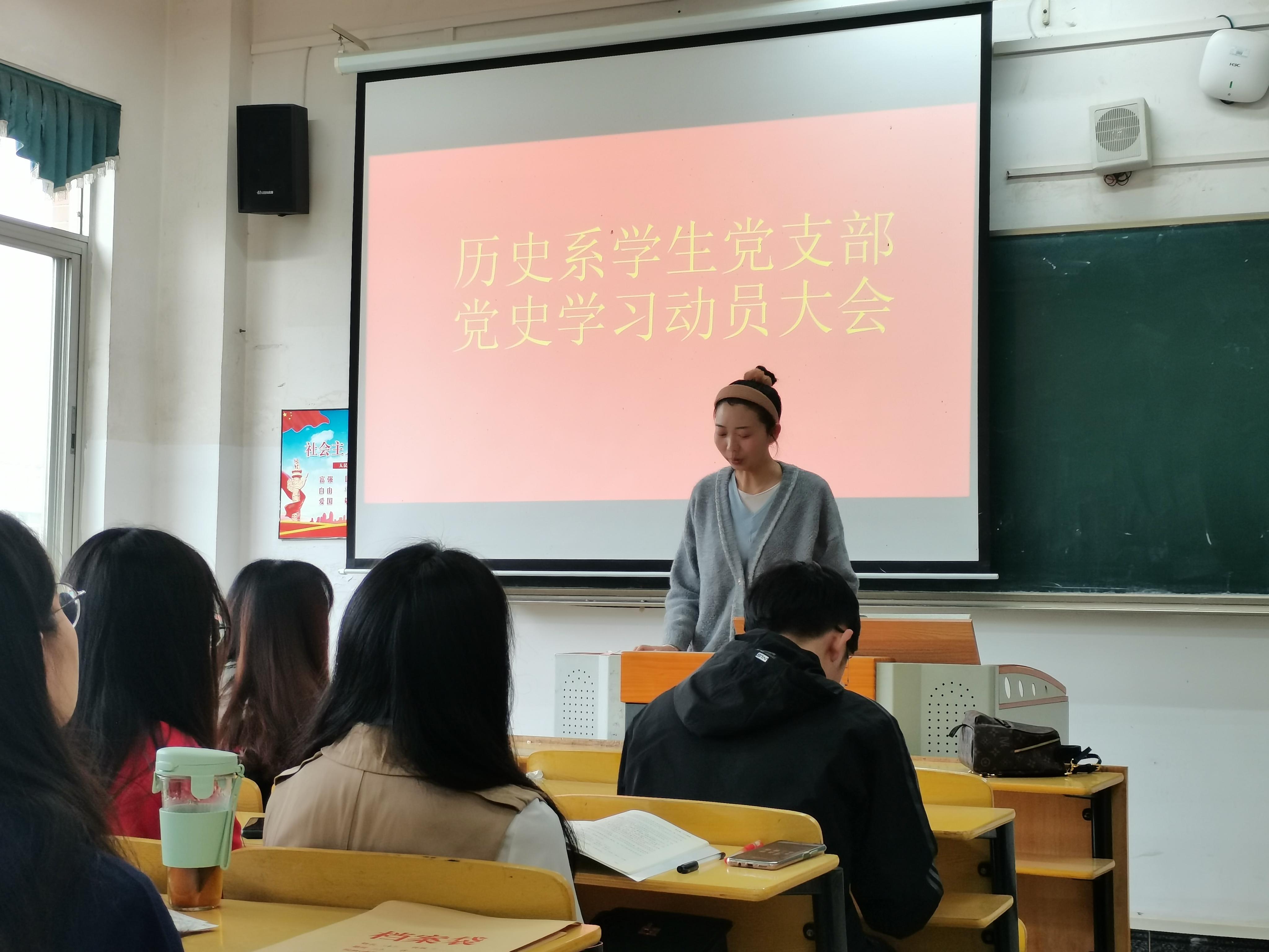 2021年3月19日,历史系学生党支部在5栋108召开学习党史动员大会,对历史系学生党员党史学习教育进行动员,支部书记戴梦雅作动员讲话。