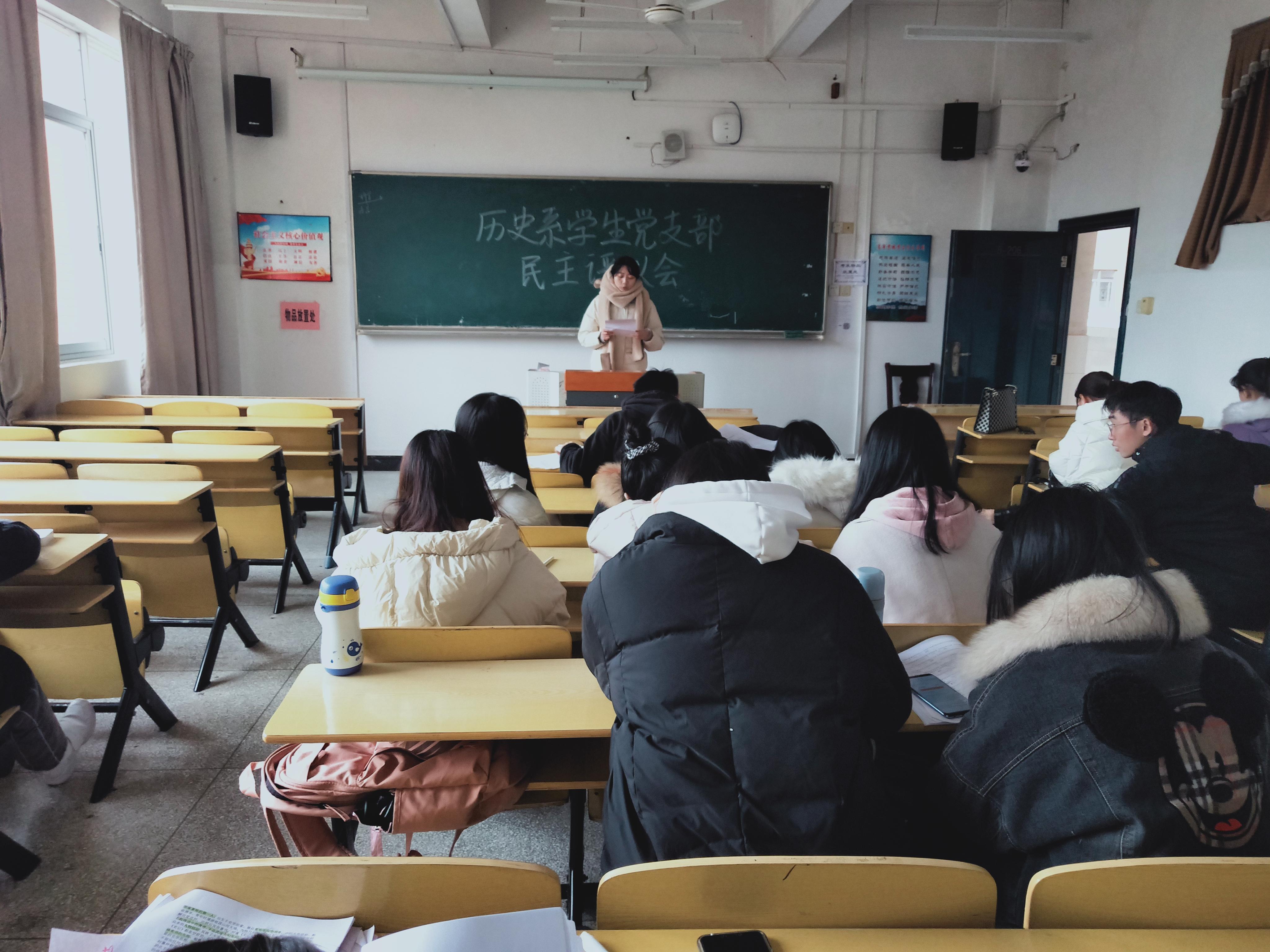 1月14日下午三点,历史系学生党支部在五栋108教室召开了专题组织生活会和民主评议党员。会议由支部书记戴梦雅主持,历史系学生党支部全体党员出席会议。