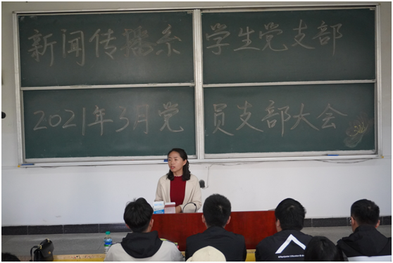 3月18日,新闻传播系学生党支部于五栋204室召开了党员发展大会,本次会议主要讨论了2021年三月份发展对象吸收为预备党员事宜。支部书记戴富华、在校学生党员、入党积极分子一同参加了此次会议。