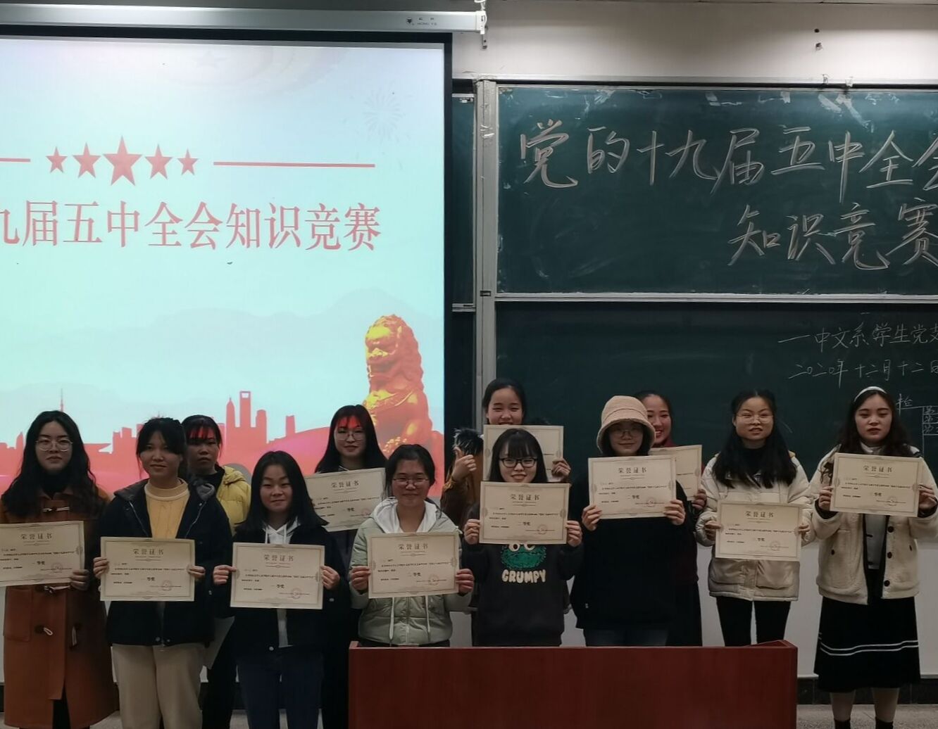 为学习贯彻落实党的十九届五中全会精神,中文系学生党支部于12月12日晚在五栋105教室组织举办党的十九届五中全会知识竞赛,中文系党员、入党积极分子及20级新生参与本次活动。