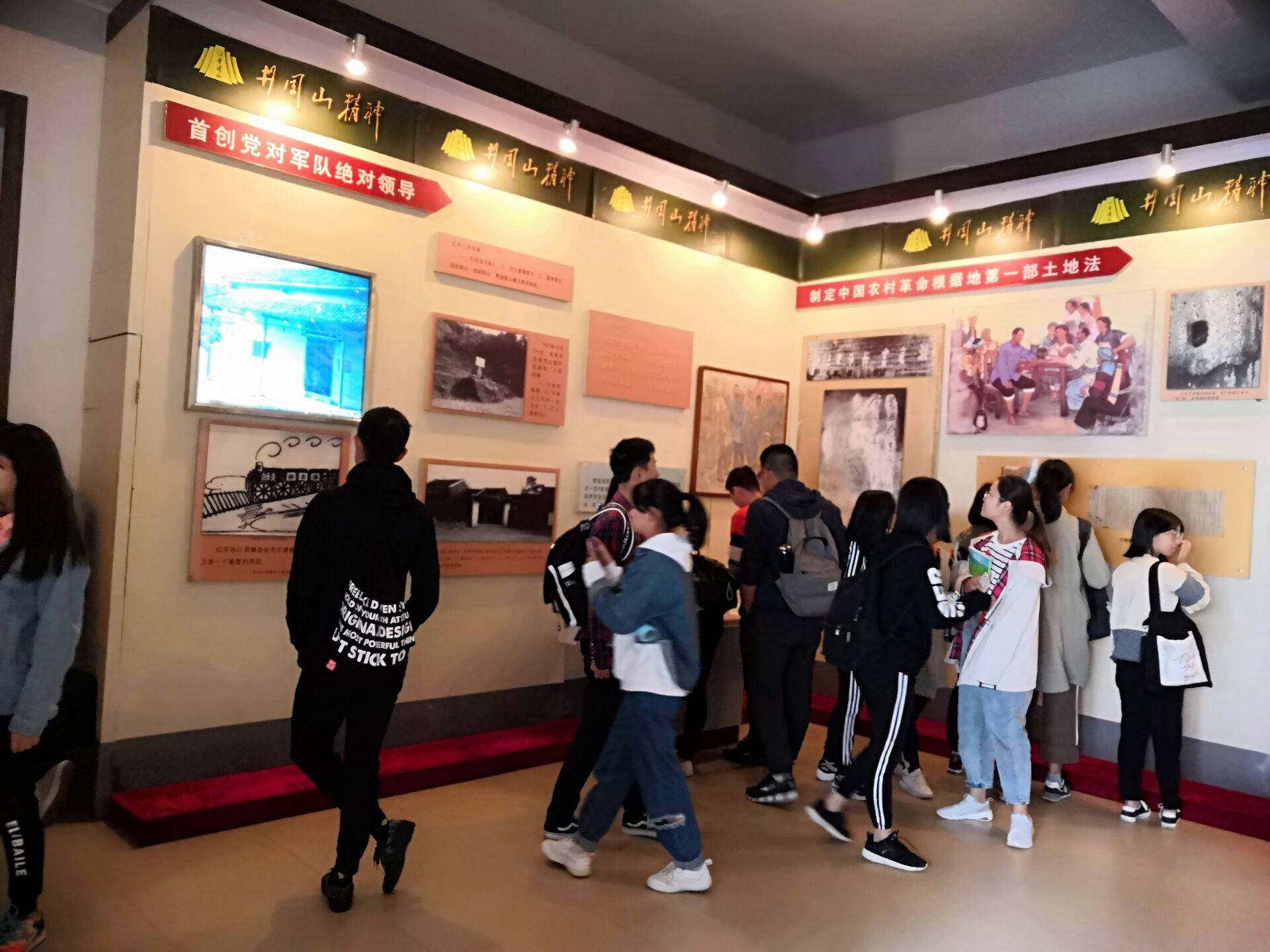 在朱晓艺同志的引导下,全体新生依次参观了四个展馆,并通过展柜中的各种文物和墙上的文字真切地体会到了革命先烈的伟大事迹,学习到了中国共产党在井冈山开辟“农村包围城市,武装夺取政权”的道路、创建中国第一个农村革命根据地的光辉历程,同时更深切的体会到“坚定执着追理想,实事求是闯新路,艰苦奋斗攻难关,依靠群众求胜利”井冈山精神的深刻内涵。在参观的过程中,同学们不由自主地学习、提问,主动参与到活动中来,取得了十分良好的效果。