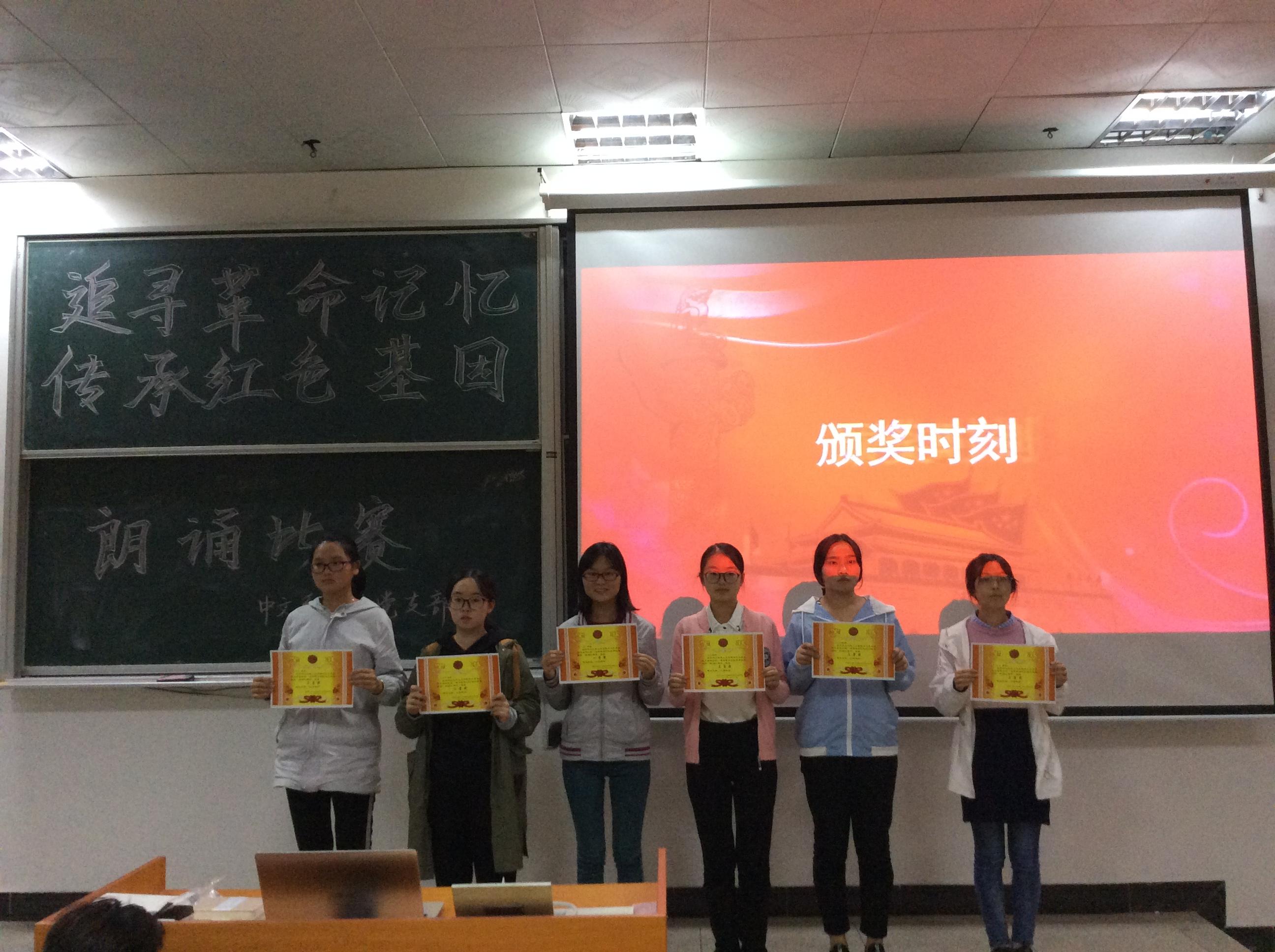 为响应省委书记刘奇同志关于“每位同志都要认真读一读《红色家书》”的号召,引导广大青年自觉为共产主义远大理想和中国特色社会主义共同理想而奋斗,中文系学生党支部组织开展了以“追寻革命记忆 传承红色基因”为主题的朗诵比赛。10月23日晚,朗诵比赛决赛在5栋307举行,由陶淑瑞同学主持。