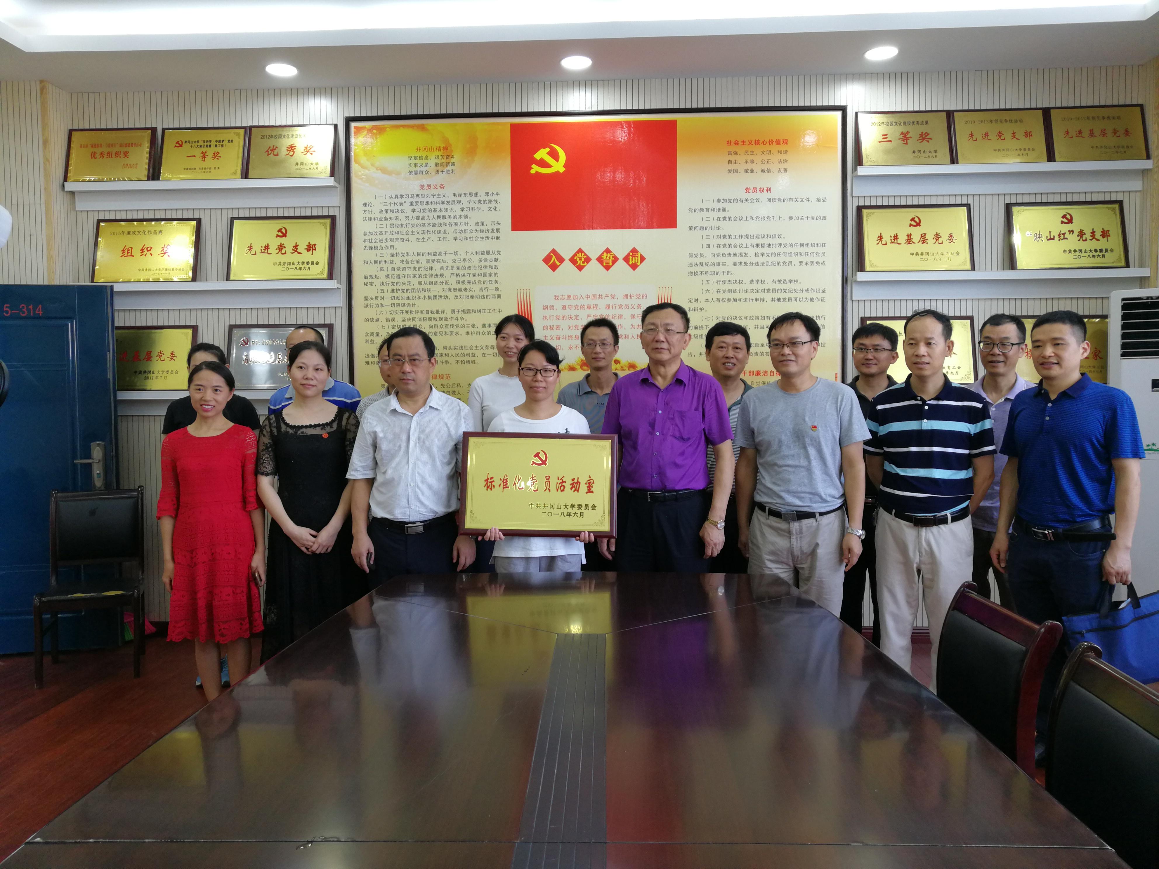 7月3日上午,校党委书记彭涉晗、副书记肖长春,在组织部领导欧阳杰、肖继仁、梁景宏等的陪同下,莅临我院指导工作,并为我院党员活动室授牌。授予学院党员活动室为井冈山大学2018年标准化党员活动室。