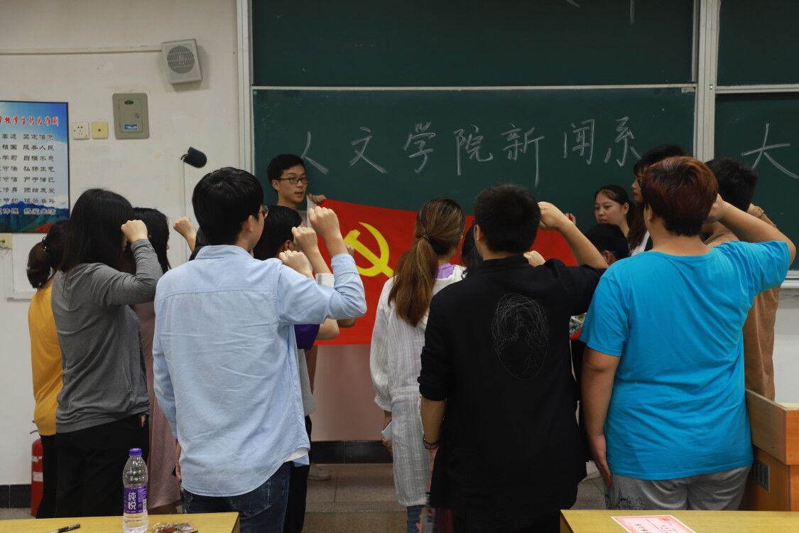 下午4时30分许,在全体党员合影留念后,罗孝炳同志带领新发展的14名预备党员进行了入党誓词的宣誓仪式,自此,2018年上半年新闻传播系学生党支部大会顺利结束。
