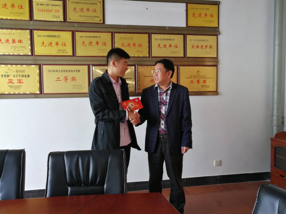 陈小林副校长代表党组织表达了对困难党员的关怀,赞扬秦佑鹏品学兼优,勉励他继续奋发图强,在各方面发挥党员的先锋模范作用。