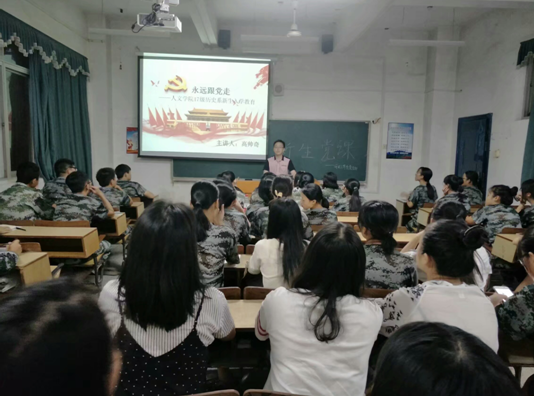 2017年9月13日晚上7点,人文学院历史系学生党支部于五栋教学楼召开历史系新生第一节党课,主要目的是为了让新生了解党知识,积极向组织党靠拢。