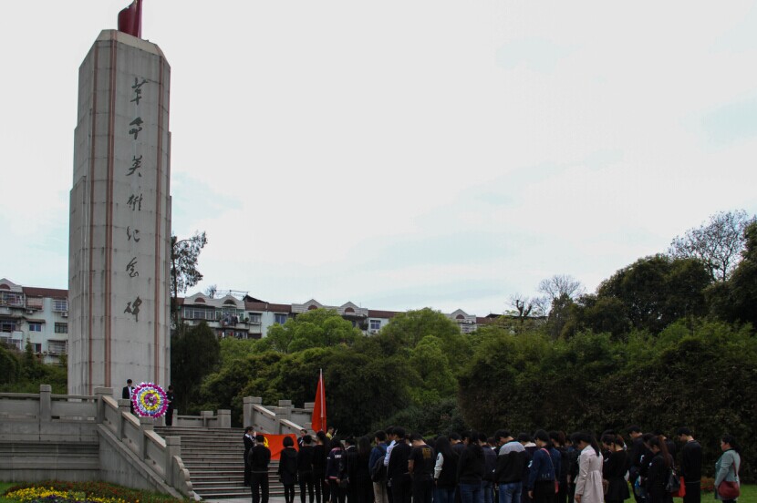 清明即将到来之际,为悼念革命先烈,缅怀先烈的丰功伟绩,人文学院学生党员和预备党员在三位支部书记的带领下,于3月28日步行前往白鹭洲公园革命烈士纪念碑,开展清明祭扫活动。