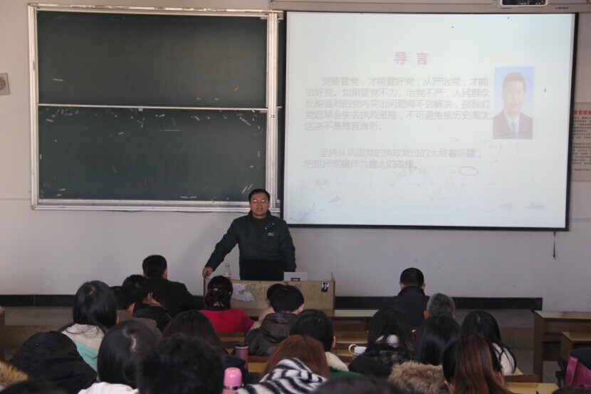 为进一步学习贯彻落实党的十八届四中全会和习近平总书记系列重要讲话精神,认真落实学院党风廉政建设党委主体责任和纪委监督责任,12月4日下午,学院举办了主题为“加强党风廉政建设,促进学院科学发展”的学习讲座。讲座由院长刘晓鑫主持,党委书记欧阳杰担任主讲,我院全体教工和学生党员参加。