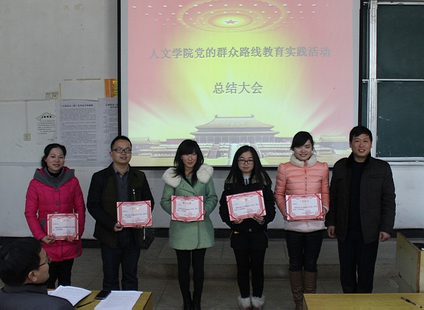 2月20日,学院召开表彰大会,为2013年党建工作先进集体和个人颁布发了荣誉证书。此次受表彰的集体和个人有:先进党支部——中文系学生党支部;优秀党务工作者5人,分别是吴翔明、周冬梅、王爽、张丽、石蒙蒙;优秀党员12人,分别是顾宝林、陈致群、康梅钧、刘禀诚、丁向阳、陈连禄、徐燕娟、李苗、林雪、周兵谋、李定、赵玲君。(卢东喜)