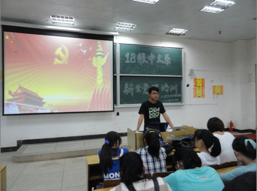 9月25日下午,由我院中文系学生党支部组织的新生入党培训课在五栋105教室正式开讲。党支部的三位负责人刘冬枚、刘丽云和陈连禄详细说明了为什么要入党,怎样入党等有关党的问题。负责人刘冬枚还谈及了自己入党的经历和经验,使新生们对入党的相关问题有了更深刻的了解。