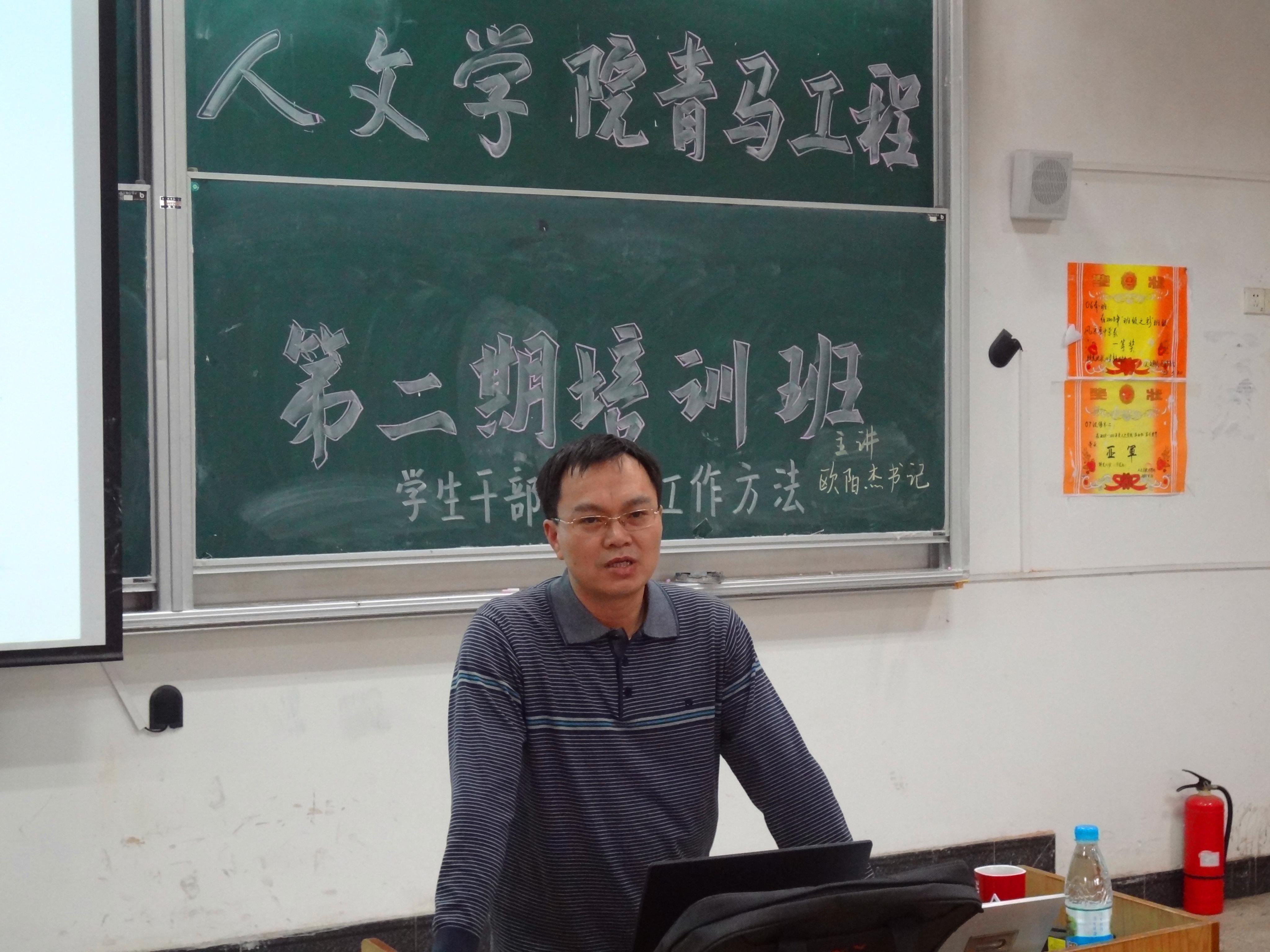 4月13日12点40第二期青年马克思主义者培养工程暨大学生骨干班第二场在5栋105开课,党委书记欧阳杰主讲《学生干部的工作方法及应注意的细节》。