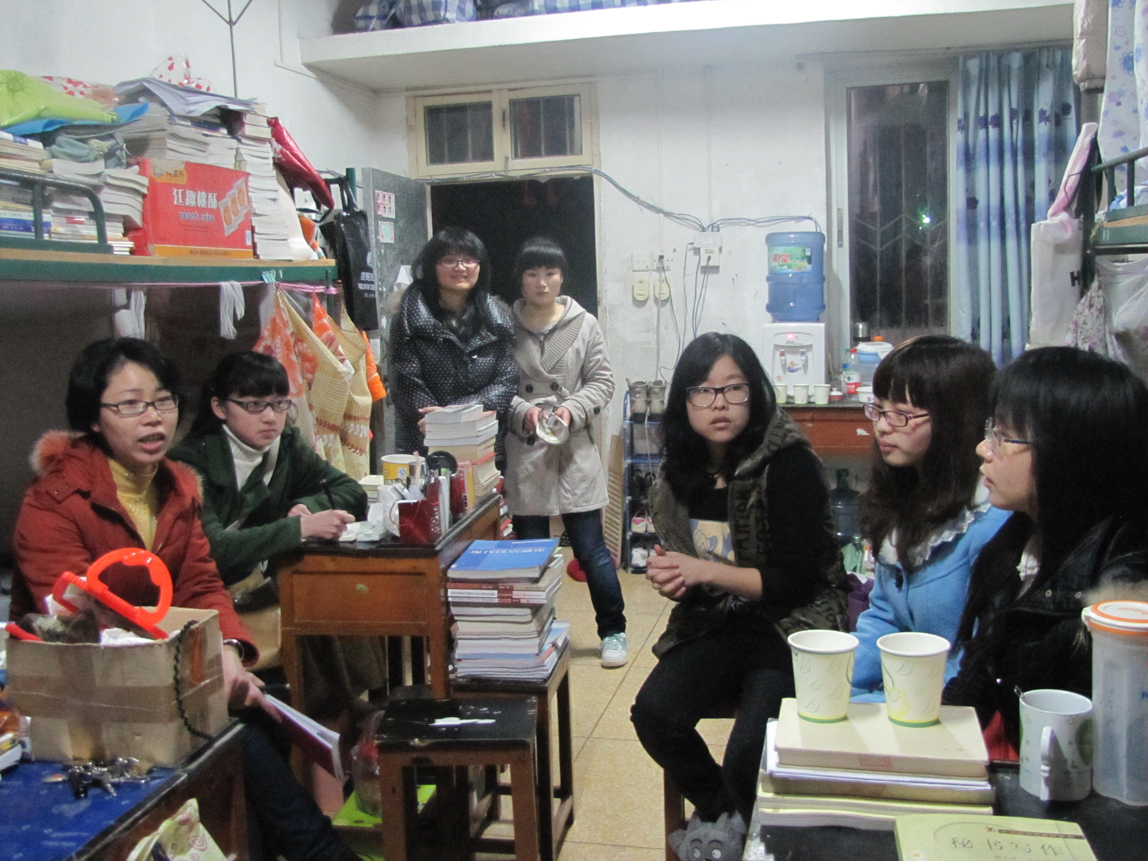 活动当晚,党员同志在支部书记郭若虹老师的带领下深入到学生宿舍,悉心为09级同学介绍考研政策、报考程序、专业及院校选择、公共科目及专业课程的复习方法等相关事项,并就09级同学提出的疑惑进行一一解答。