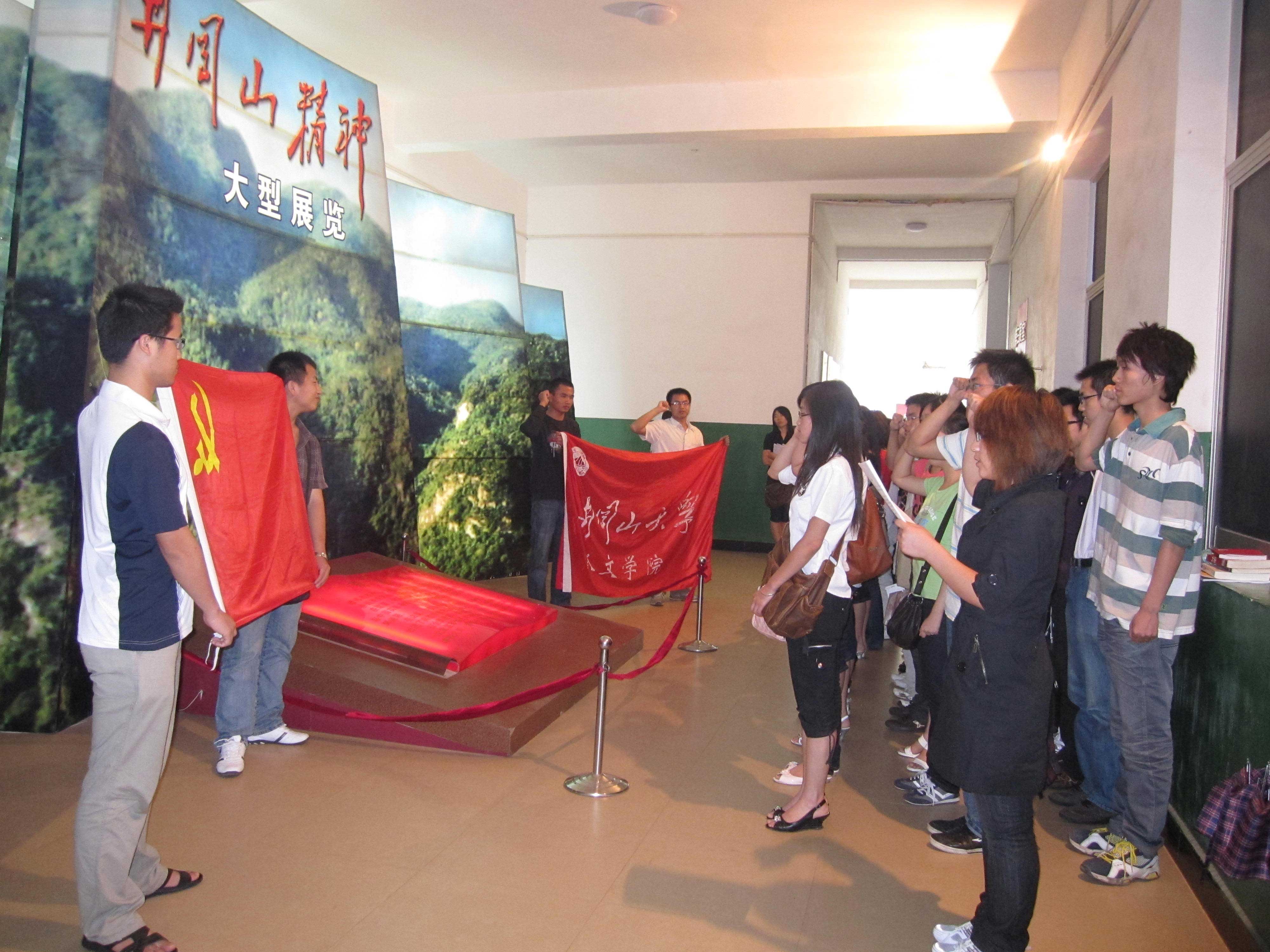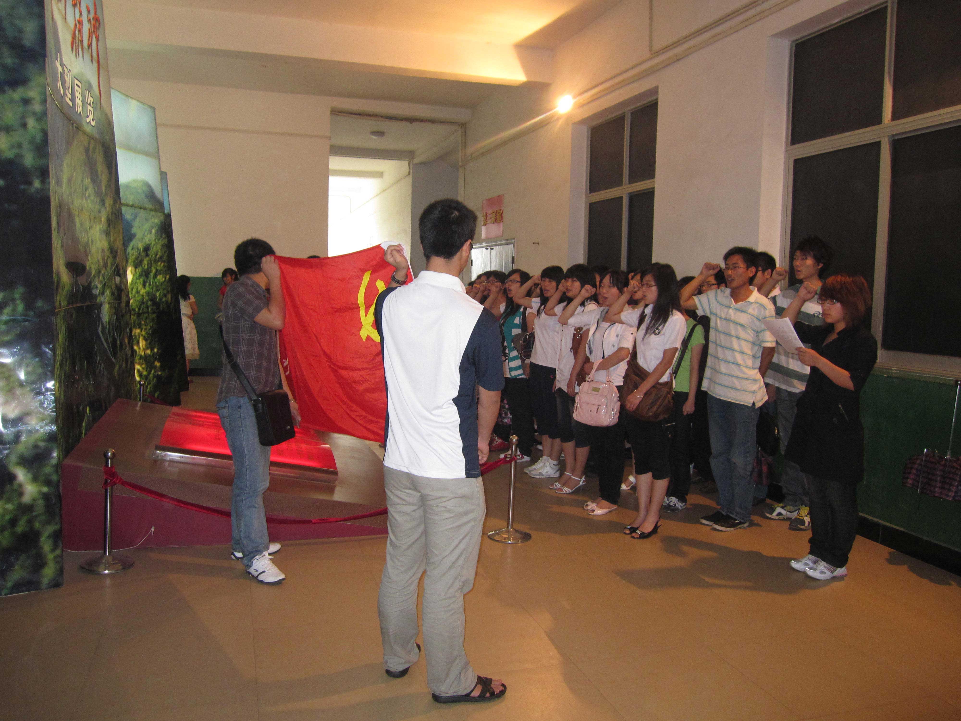 然后,新发展的38名预备党员在井冈山精神展览馆,面向党旗,做了庄严的入党宣誓,相信他们会把党员大学生的形象留到他们未来会驻脚的每一个地方,也相信我们的祖国在我们每一代人的努力下会更加富强。
