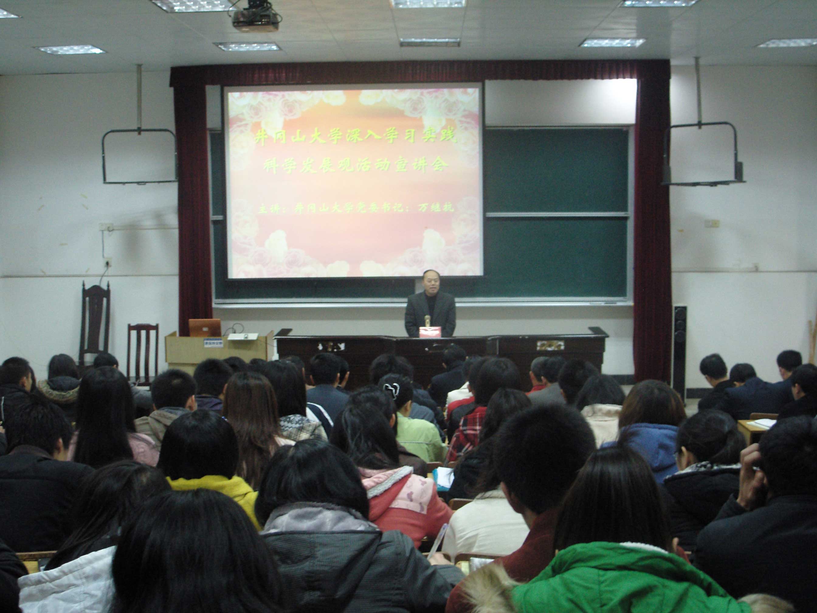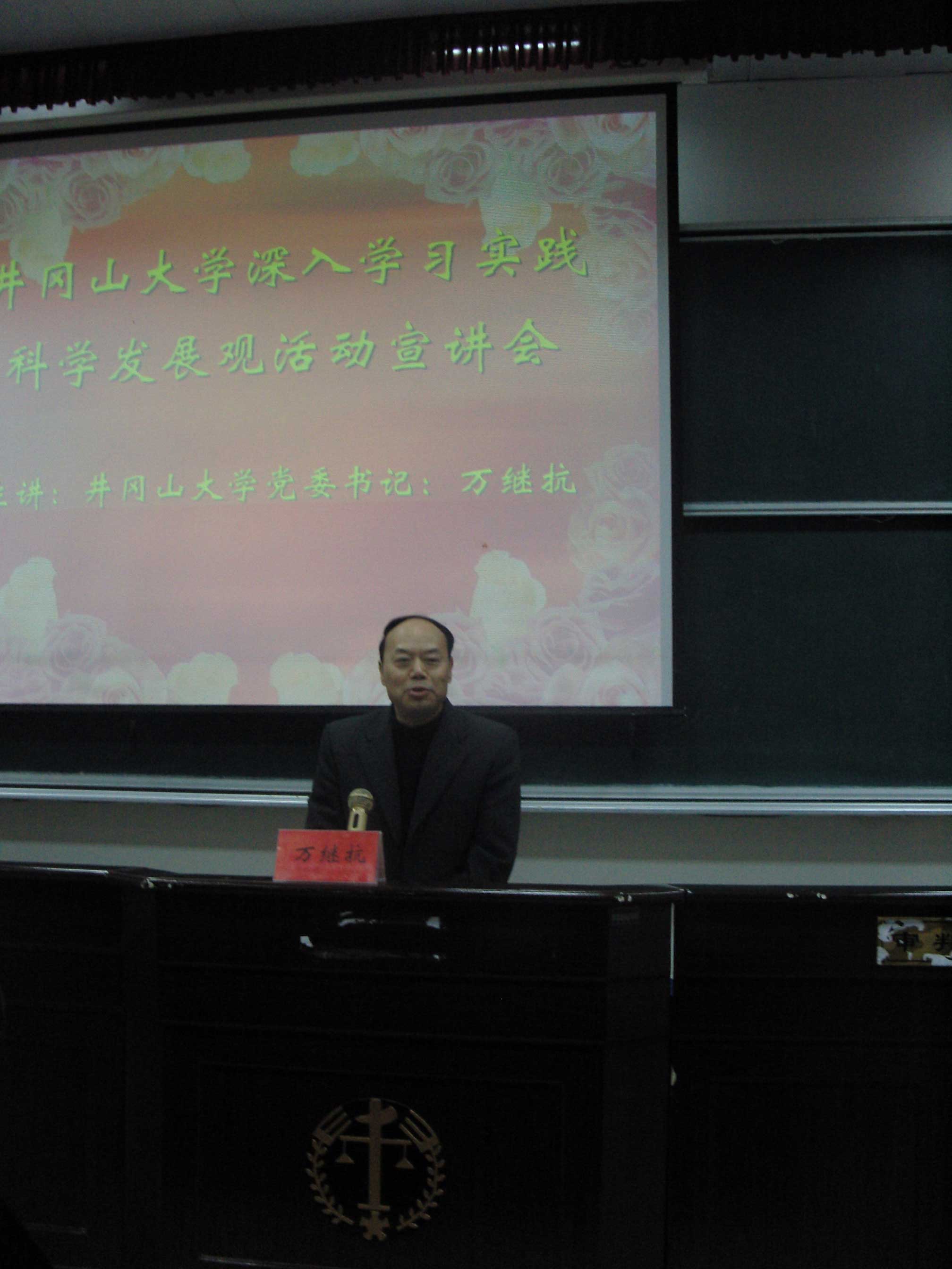 4月2日下午2:30,校党委书记万继抗在5栋教学楼408室,就深入学习实践科学发展观活动进行宣讲。人文学院与政法学院所在在校教师党员和学生党员都到场聆听。