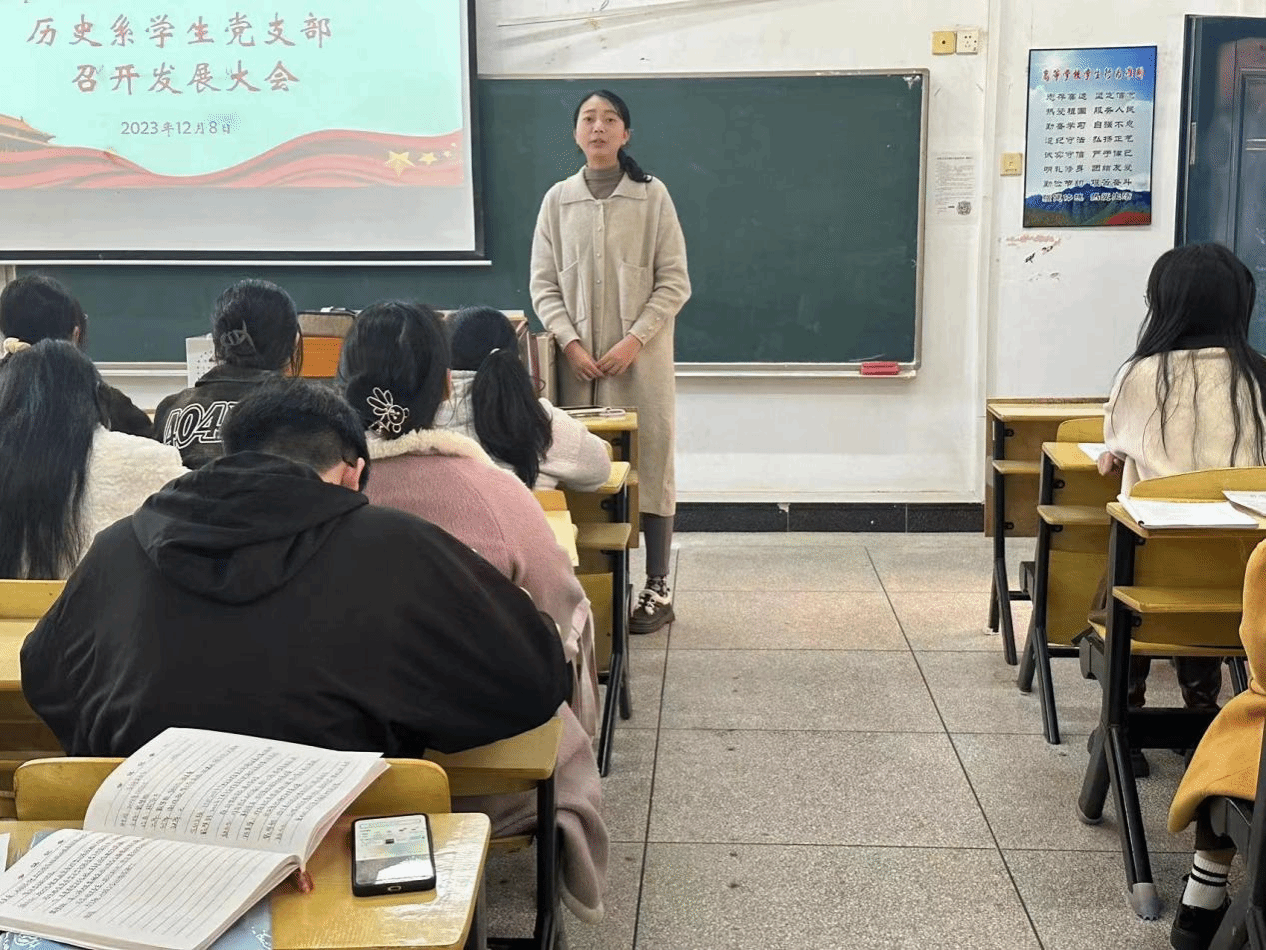 历史系学生党支部于12月8日在五栋107召开党员发展大会,历史系学生党支部全体党员出席了此次大会,会议由支部书记戴梦雅主持。