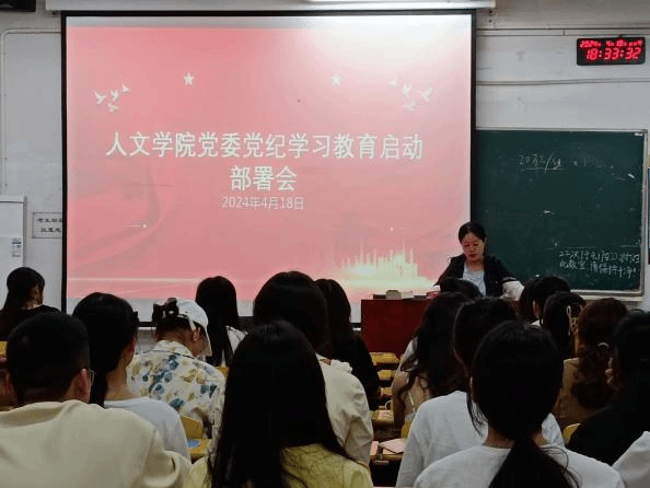 为进一步深化党员对加强党的纪律建设重要性和忽视党纪、违犯党纪问题危害性的认识,从严抓好党的纪律建设。中文系学生党支部于4月18日晚在5栋201教室召开党纪学习教育启动会,支部书记陈灵婧主持并提出要求。