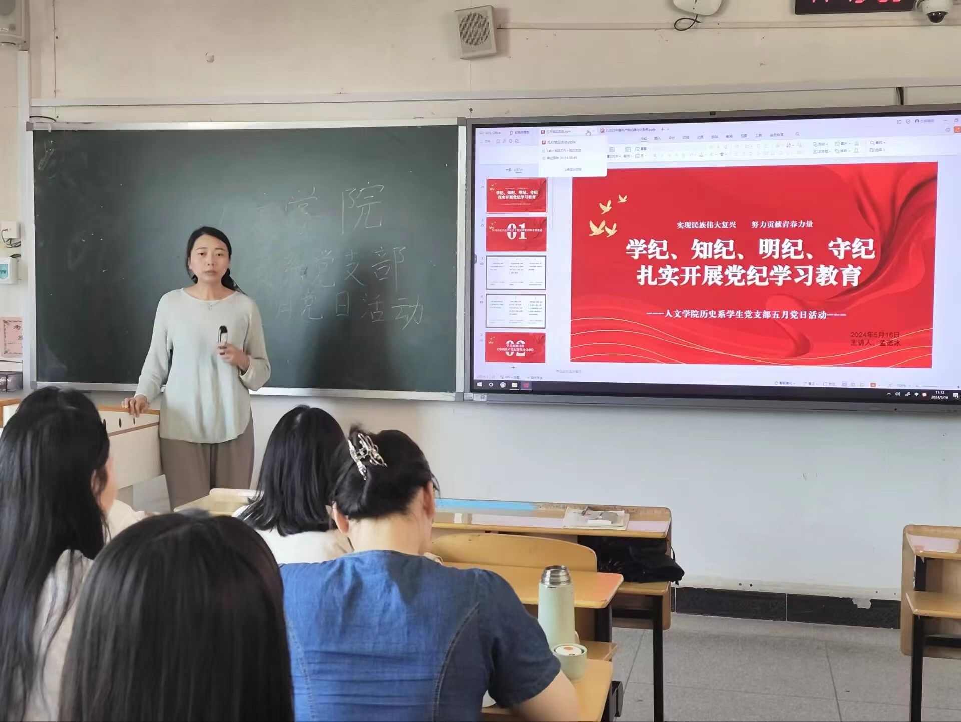 为深化党建引领,增强党员党纪思想意识,历史系学生党支部于5月16日上午在五栋305教室开展了以“学纪、知纪、明纪、守纪,扎实开展党纪学习教育”为主题的五月党日活动。