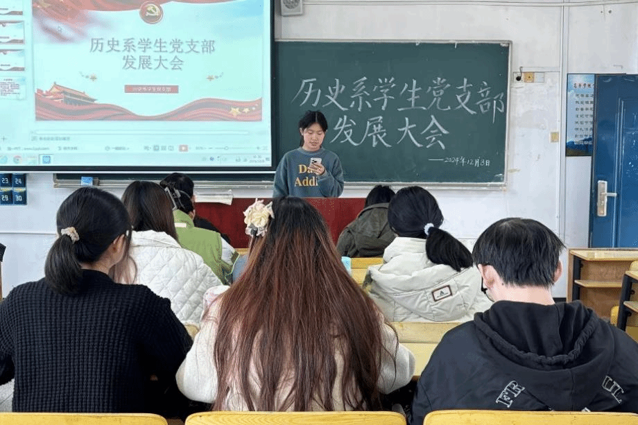 历史系学生党支部于12月8日在五栋508召开党员发展大会,会议由党支部书记戴梦雅主持,历史系学生党支部全体党员参加。大会严格按照党员发展程序,讨论是否吸收郑春燕、彭丹丹、郭子祥3位发展对象为中共预备党员。