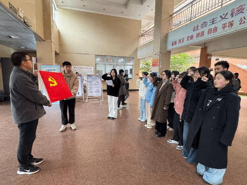 在会上,党支部书记陈玉萍希望各位同志时刻谨记党员标准,在学习工作生活中发挥好学生党员的先锋模范带头作用。最后11名中共预备党员进行了入党宣誓。