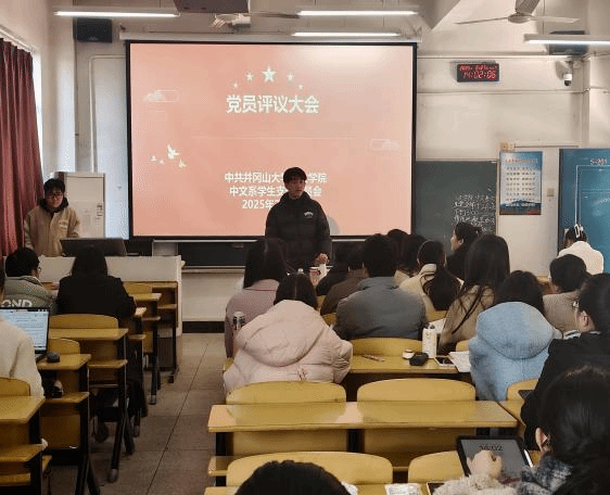 中文系学生党支部于2月27日在五栋201教室召开2024年度组织生活会暨民主评议党员会议。会议由党支部书记张鑫瑞主持,全体学生党员参加。