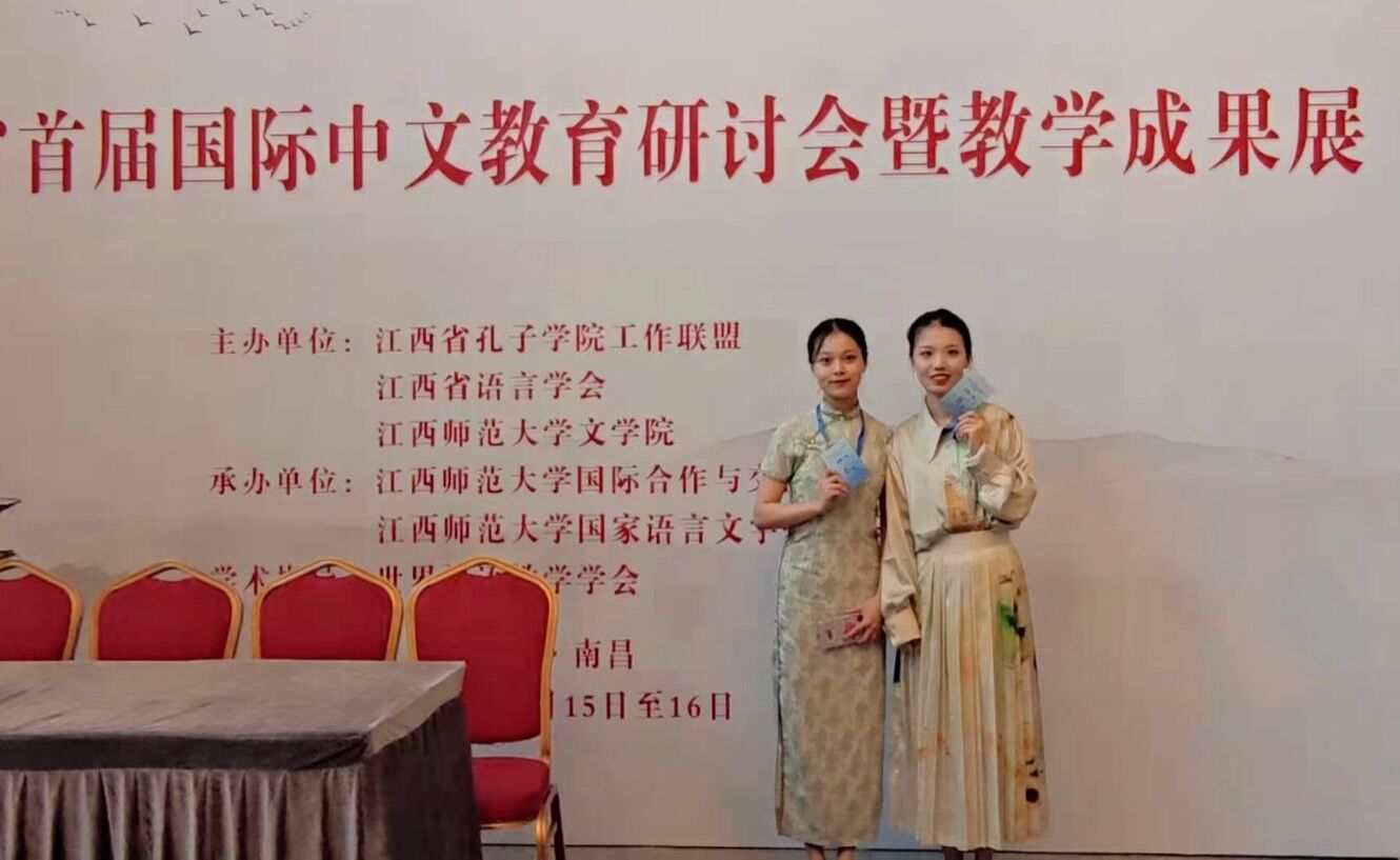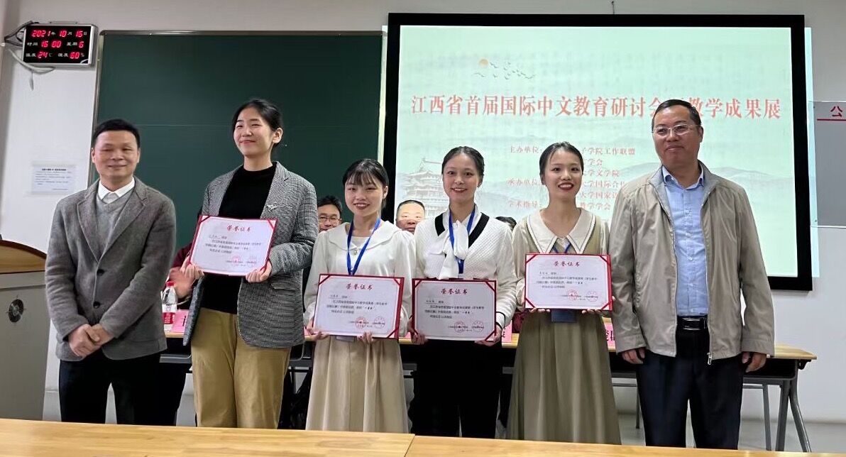 10月15-16日,由江西省孔子学院工作联盟、江西省语言学会和江西师范大学文学院联合主办的江西省首届国际中文教育教学成果展暨学生教学技能比赛在江西师范大学成功举办。来自南昌大学、江西师范大学、赣南师范大学等省内设有汉语国际教育本科和硕士专业的全部十二所高校的学生参加比赛。我校2019级汉语国际教育专业谢采薇、夏彬愉两位同学参加了本科组的比赛,双双获得赛事最高奖项一等奖,占据本科组四个一等奖中的一半。罗志春、周静、周冬梅、聂桂兰等四位老师荣获优秀指导教师称号。