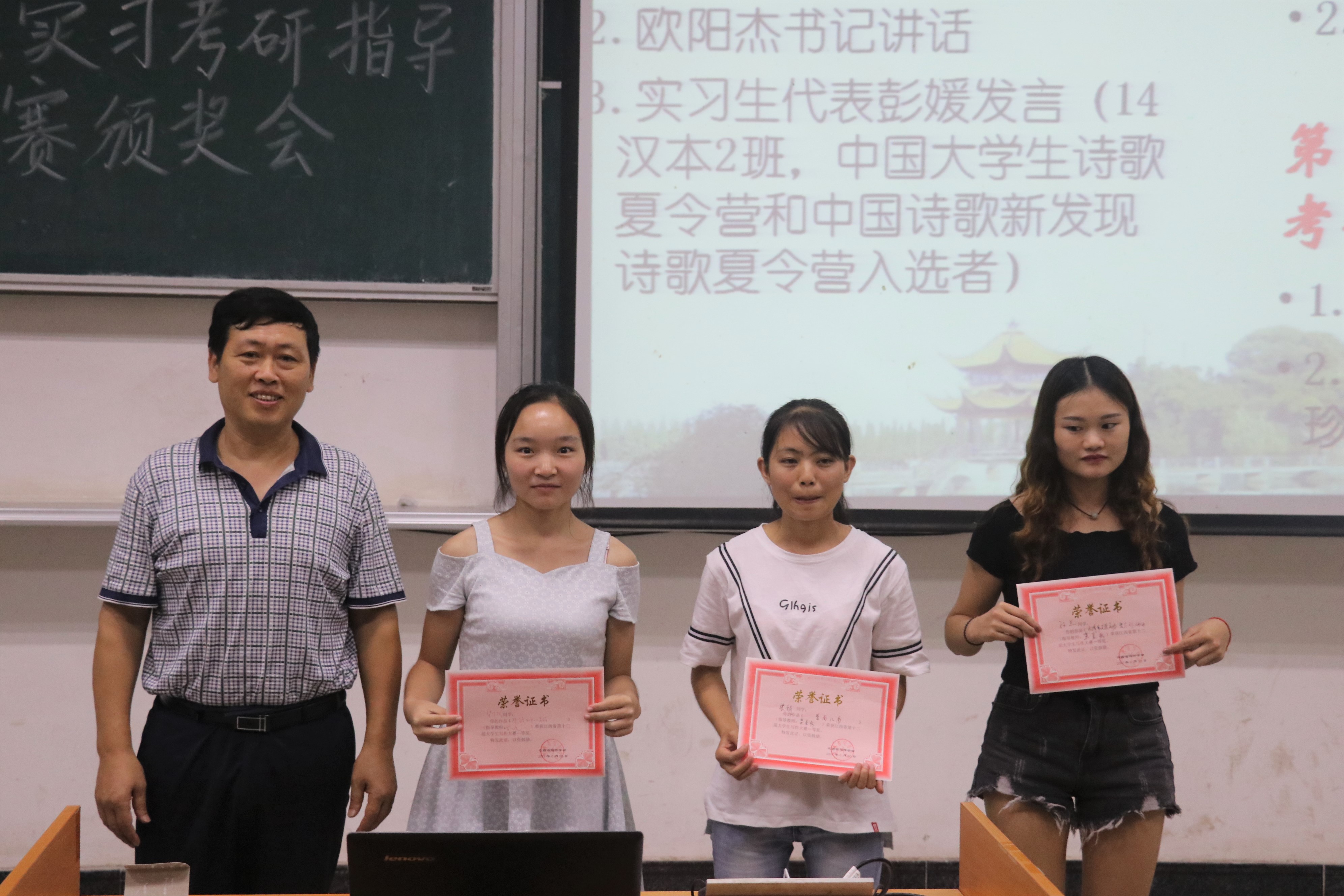 中文系副主任龚奎林宣读了获奖名单,获得一、二、三等奖的学生依次上台领奖。院长刘晓鑫、副院长邱斌及各位老师分别为同学们颁发荣誉证书。