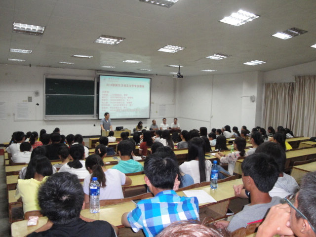 为了让2014级新生对自己所学专业有全新的了解与认识,根据我院专业教育的统一部署,9月15日晚上7:00,中文系组织2014级汉语言文学专业本科1班、3班、三班在5教204开展了汉语言文学专业教育活动,我院院长、汉语言文学专业带头人刘晓鑫教授、语言学教研室主任聂桂兰副教授、龚奎林博士以及三个班班主任陈绪平博士、郑乃勇副教授、欧阳明亮博士和已经毕业考取公务员的10汉本1班王瑾同学参加了专业教育交流会。