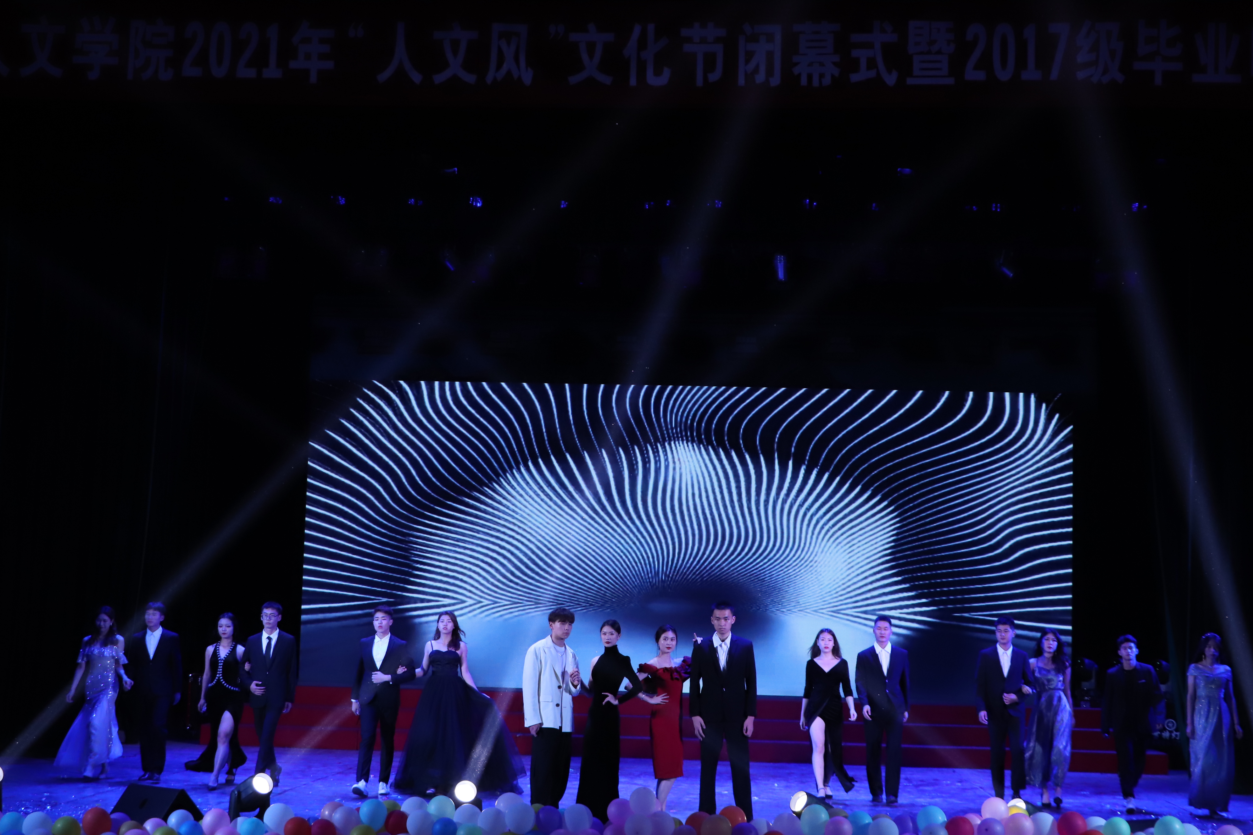 5月21日18时30分,由乐队带来的歌曲《你要跳舞吗》《没有理想的人不伤心》点燃全场,揭开了2021届“人文风”文化艺术节闭幕式暨2017级毕业晚会在学生会堂隆重举行的第一幕。