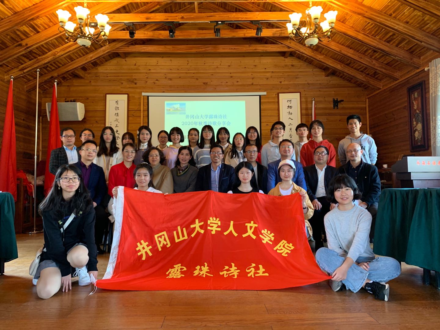 11月8日,由人文学院主办的2020年露珠诗社秋季分享会在吉州区石语荷园举行。嘉宾龙海鹰、吴小堃、邓小川、吴翔明、张睫,露珠诗社指导老师曾纪虎、龚奎林、陈冬根、汪剑豪,吉安职业技术学院诗人李洁及其学生李薇、曾霖、黄梦婷,露珠诗社成员刘兰、邓子康等共计40余人出席诗歌分享会。