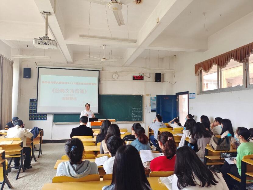 4月23日,人文学院通过“线上+线下”方式开展《经典文本背诵》实践课程考核,汉语言文学专业师生以这样特别的方式共度第27个世界读书日。