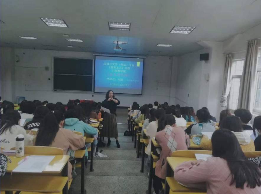 汉语言文学(师范)专业为了更好地提升职前教师教育质量,依据学习中心、产出导向的理念,努力促进师范生将教育理论有机融合于教育实践和提升教育教学实践能力,不断地进行教育教学改革。自2021 年开始正式外聘优秀中学语文教师,以多样方式参与职前教师培养。由于疫情原因,为更好地促进师范生对中学教育教学开展见习,汉语言文学(师范)专业中教法教研室本学期将“走出去”与“走进来”的见习方式相合,丰富教学组织方式,安排外聘教师为师范生上教学展示课和举办学术讲座等方式来让师范生更全面地了解教育实际。