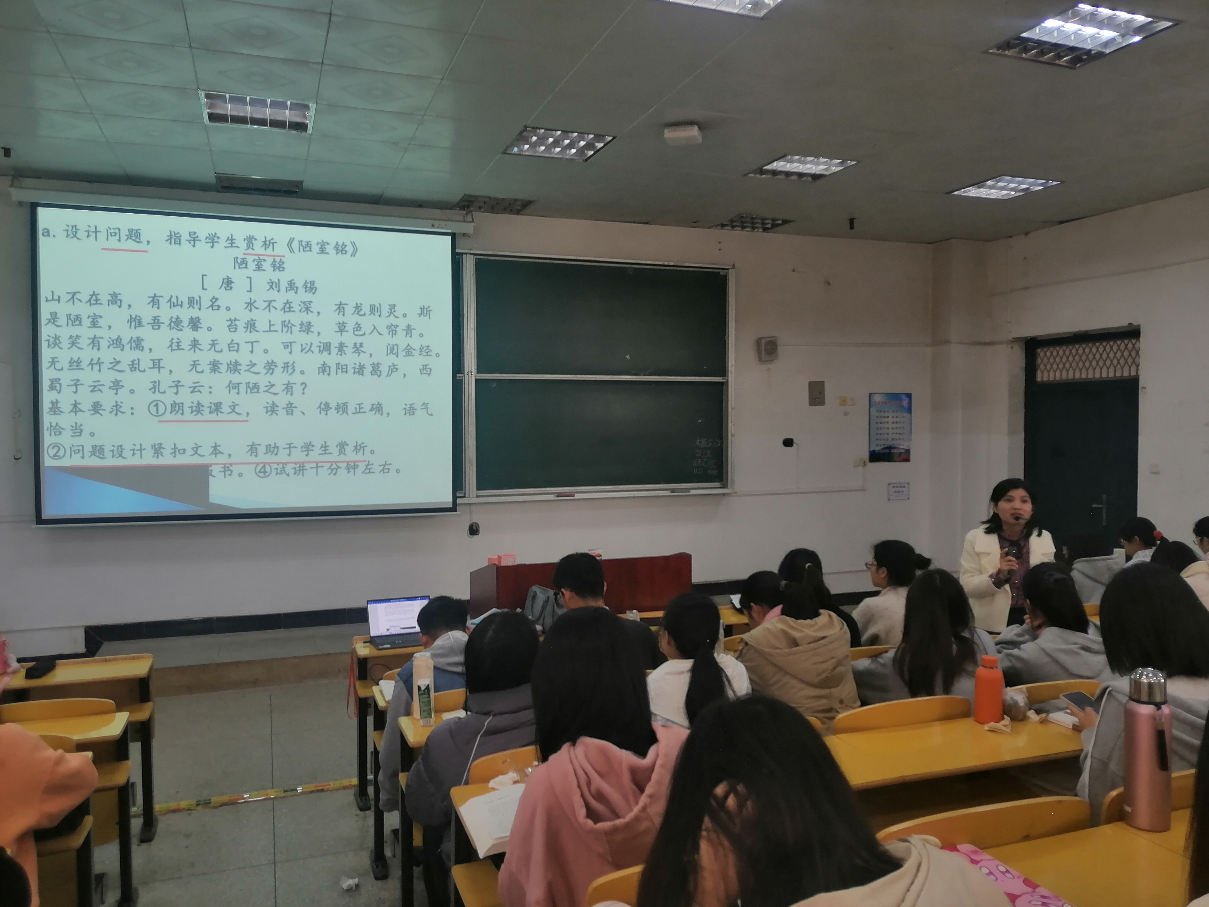 汉语言文学师范专业为提升职前教师教育质量,促进师范生语文教学实践能力的提高,一直以来极其重视教育见习。由于疫情原因,为更好地促进师范生对中学语文教育教学开展教研见习,汉语言文学师范专业中教法教研室秉持“走出去”与“走进来”相结合的理念,邀请外聘优秀中学语文教师为师范生做专题讲座,引导和促进师范生对中学语文教学中的实践问题有着更加全面的了解和更加深入的思考。