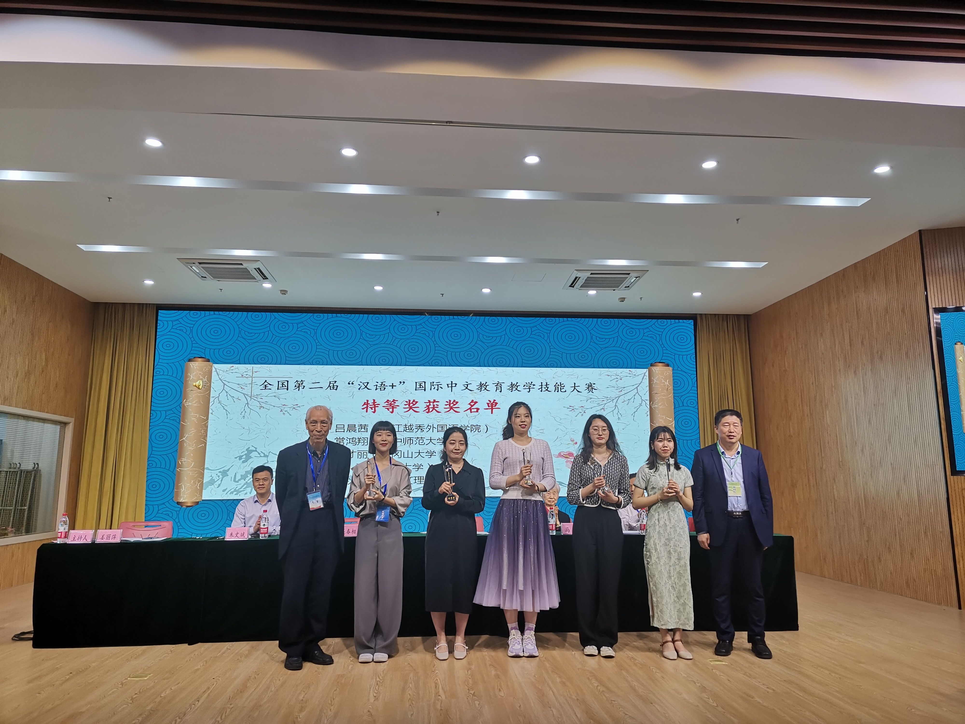 我院派出2018级汉语国际教育专业本科班的三位同学参加比赛。同学们在比赛中沉着应战,发挥出色,展现了优异的专业教学技能和专业知识水平,并最终荣获特等奖1项(黄才丽)、三等奖2项(易海文、王珍)。我院教师邱斌、周静、周冬梅、聂桂兰获优秀指导教师荣誉称号。值得一提的是,今年江西省有7所高校参赛,我校是唯一获得特等奖的高校。并且在2019年举办的首届大赛中,我校也是江西省唯一获得特等奖的高校。