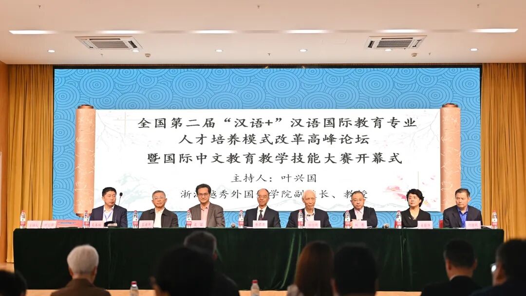 4月28日-30日,由中外语言文化比较学会主办的全国第二届“汉语+”国际中文教育教学技能大赛在浙江越秀外国语学院成功举办。中外语言文化比较学会会长吴笛教授、世界汉语教学学会原会长陆俭明教授担任大赛组委会主任,并亲临现场督导比赛;上海外国语大学博士生导师吴春相教授担任大赛组委会主任兼裁判组组长。