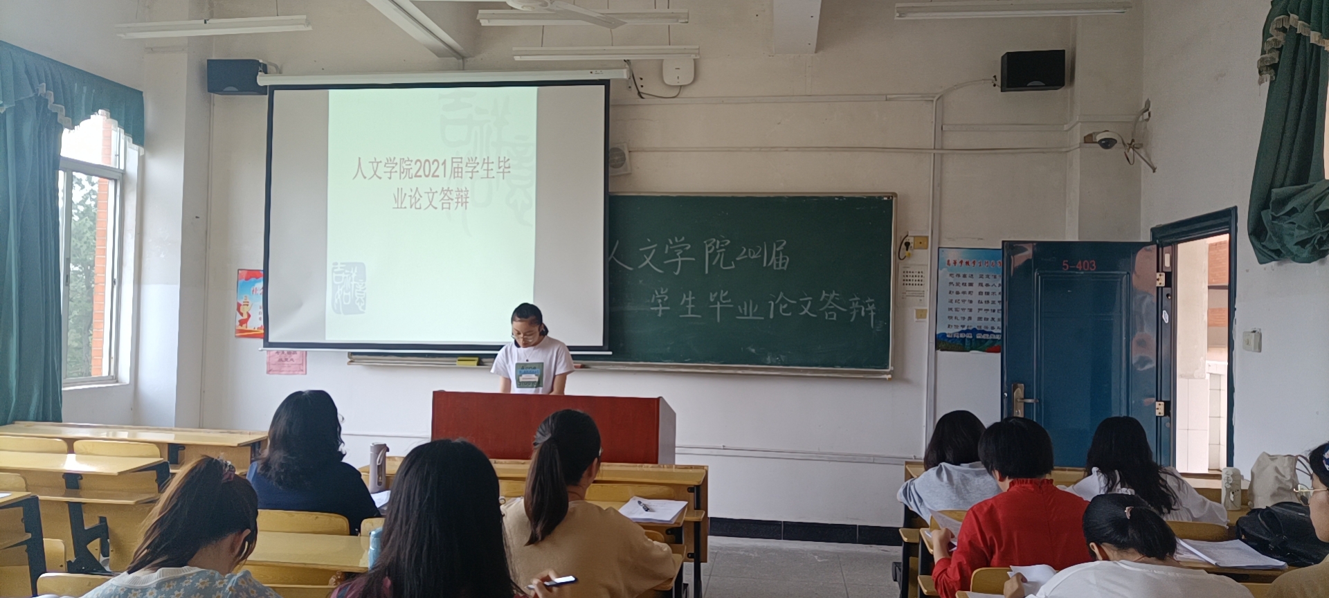 5月9日上午8时,人文学院于5栋教学楼举行2021届毕业论文答辩,参加此次答辩会的有人文学院70多位专业老师及2017级全体毕业生。