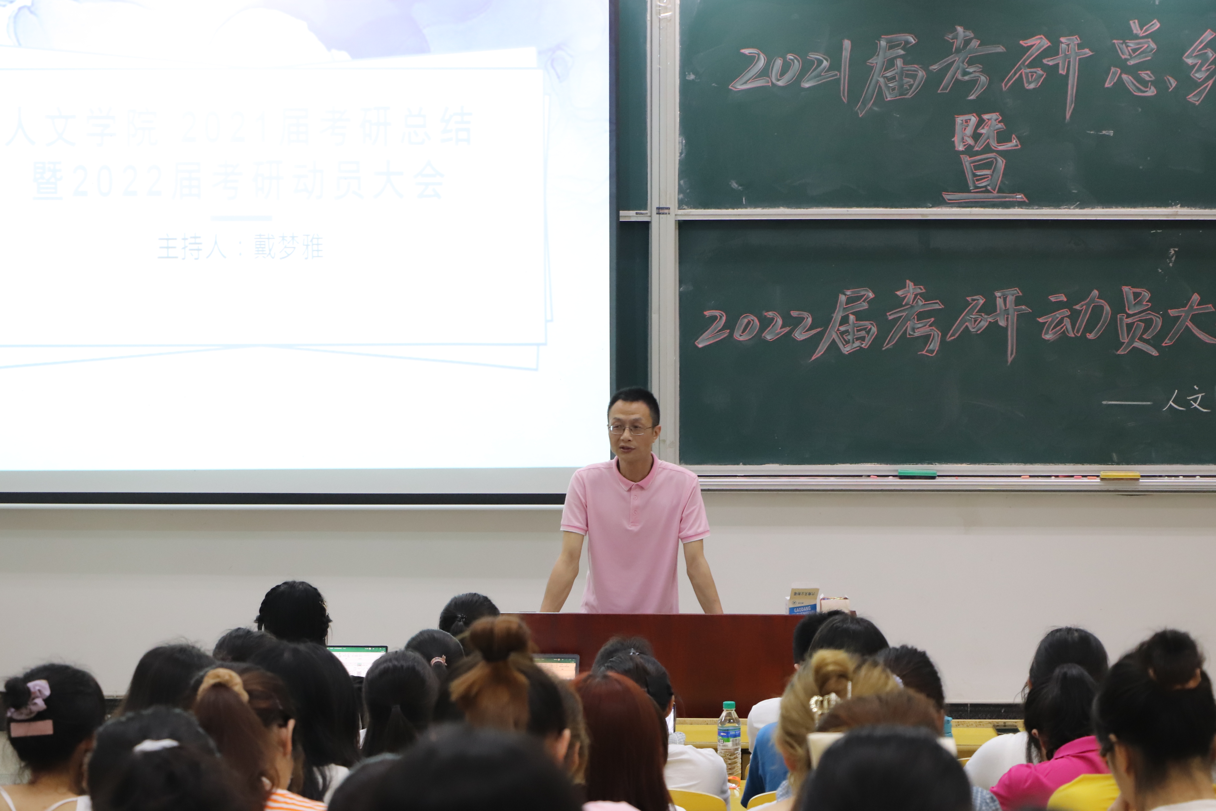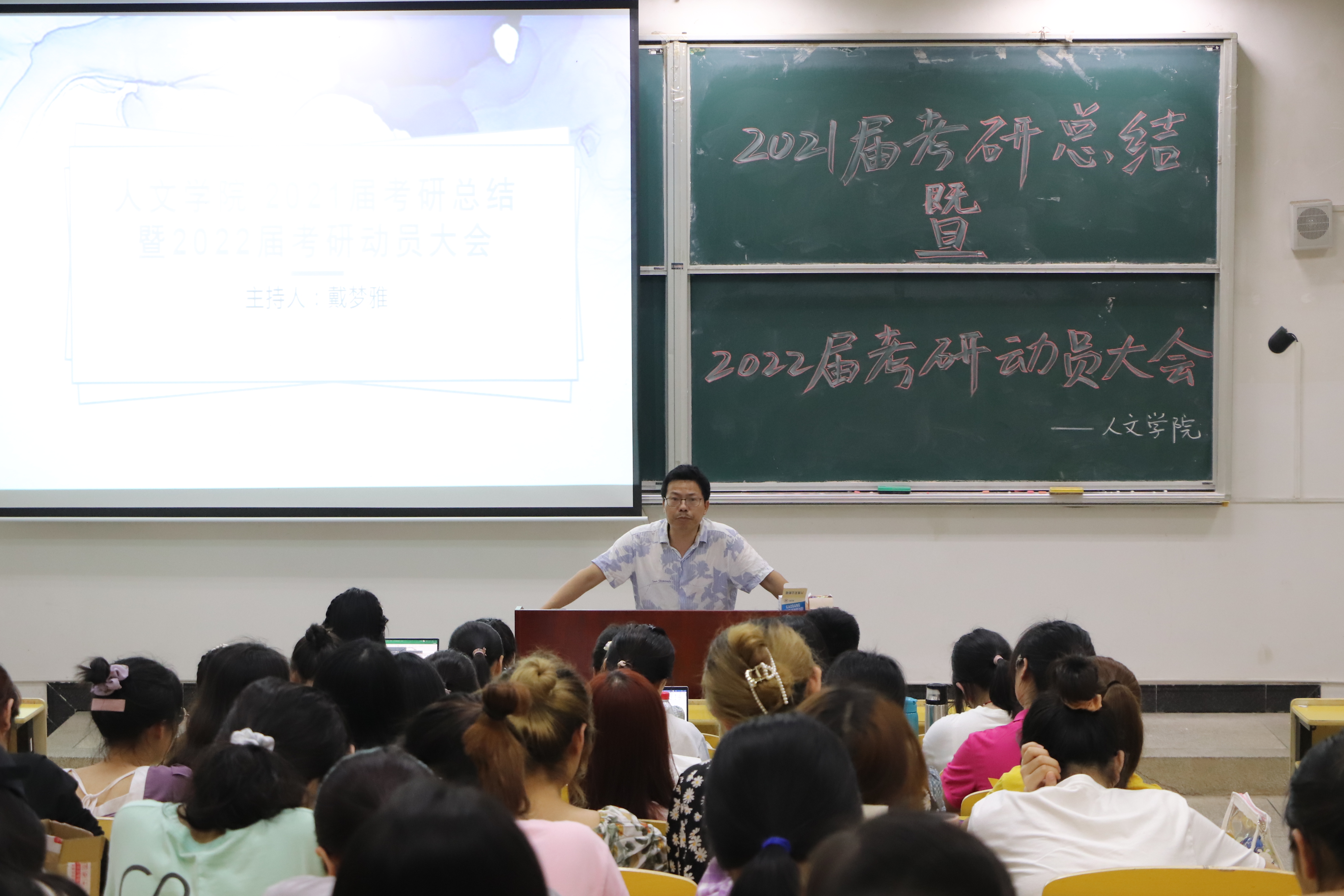 5月13日14时30分,人文学院于5栋105教室举行了2021届考研总结暨2022届考研动员大会,学生科副科长、团委副书记戴梦雅主持本次会议,出席本次大会的有人文学院党委书记康永、副院长龚奎林、梁长荣老师、周静老师以及刘禀诚老师。