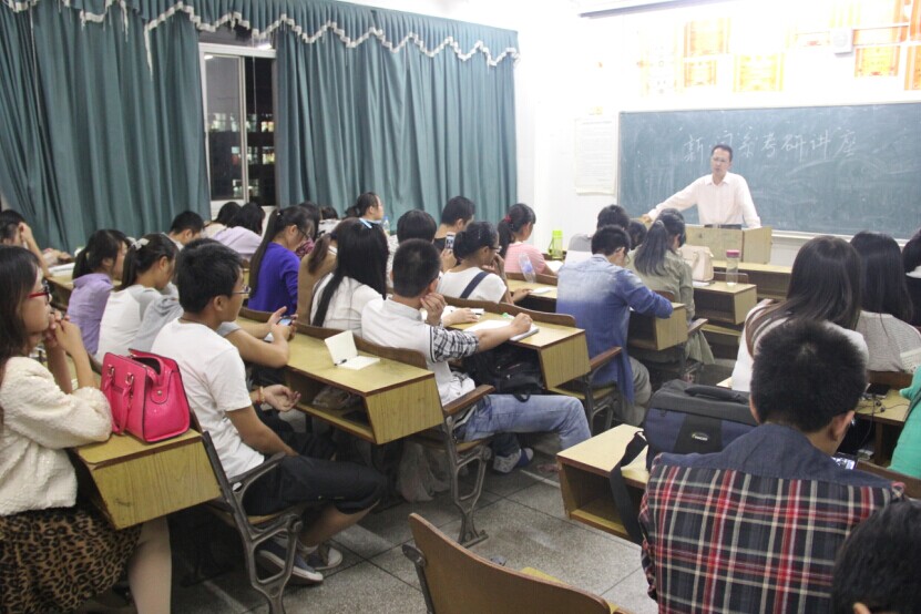 新闻系主任梁长荣老师首先就闻传播类专业考研学院往年报考情况、考研类型、报考选择等问题作了详细介绍,并给考研学子提了八点建议,希望同学们积极备考,打赢这场智力与新心态的战争。在报考学校方面,梁老师指出要注意以下三点:第一,找准目标,分清层次。第二,要注意报考学校的地域差别。第三,利用对口资源,尽量选择与我校建有合作关系的大学。