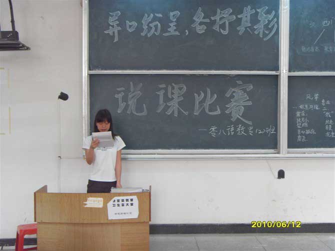 6月12日上午,我院08语教专(2)班在5栋105举行了一场主题为“异口纷呈,各抒其彩”的说课比赛。