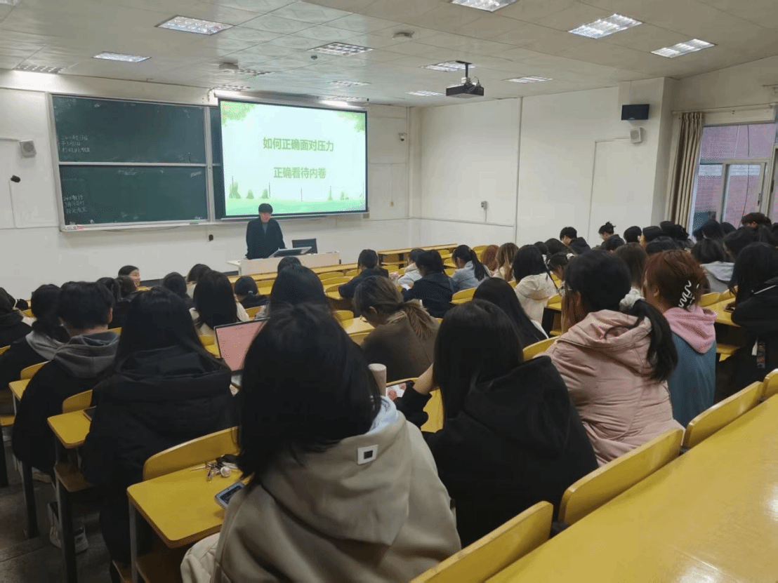 3月18日晚,我院心理导师张鑫瑞在5栋307教室为心理委员及联络员开展了《如何正确面对压力及看待内卷》专题培训。