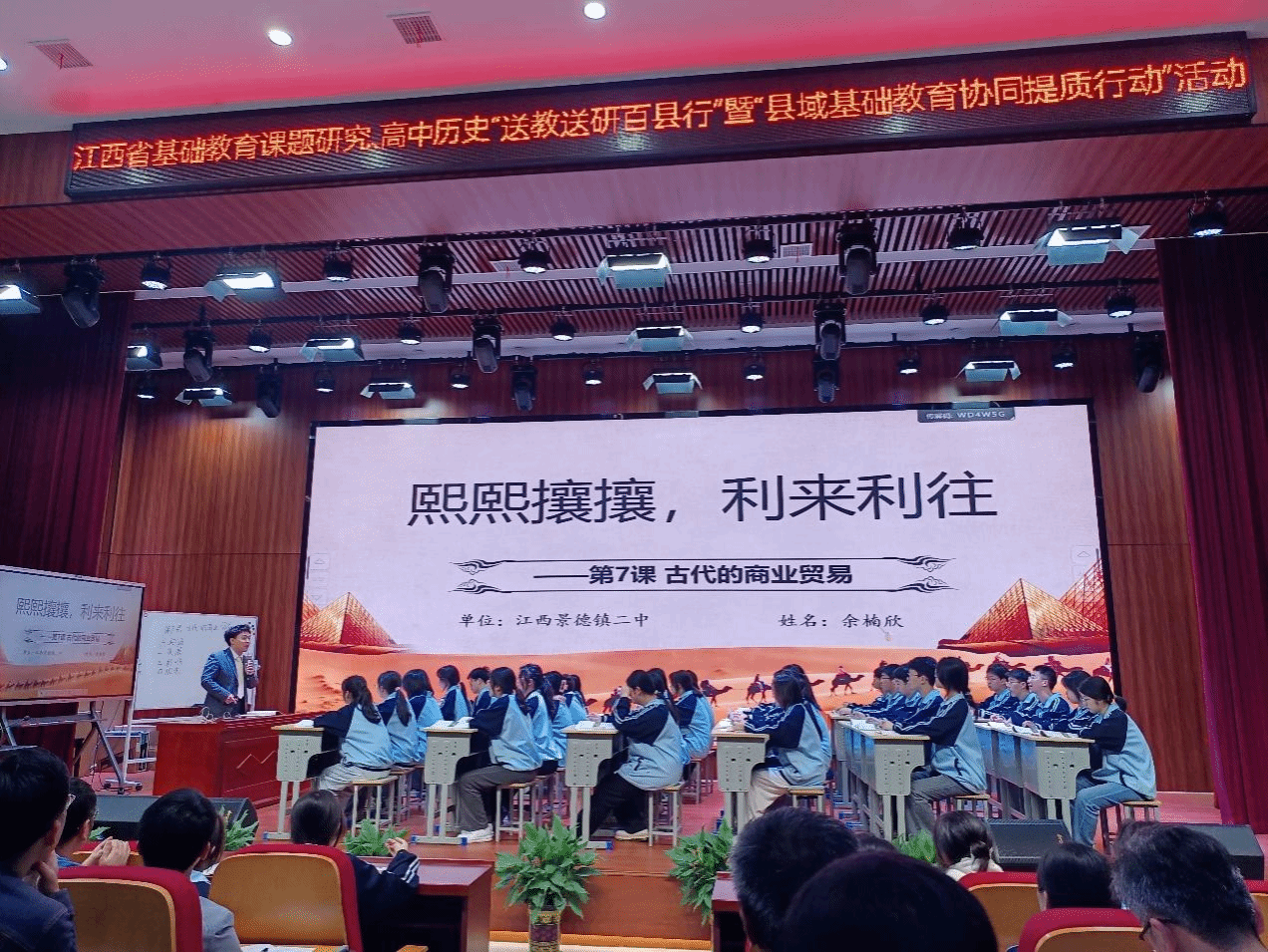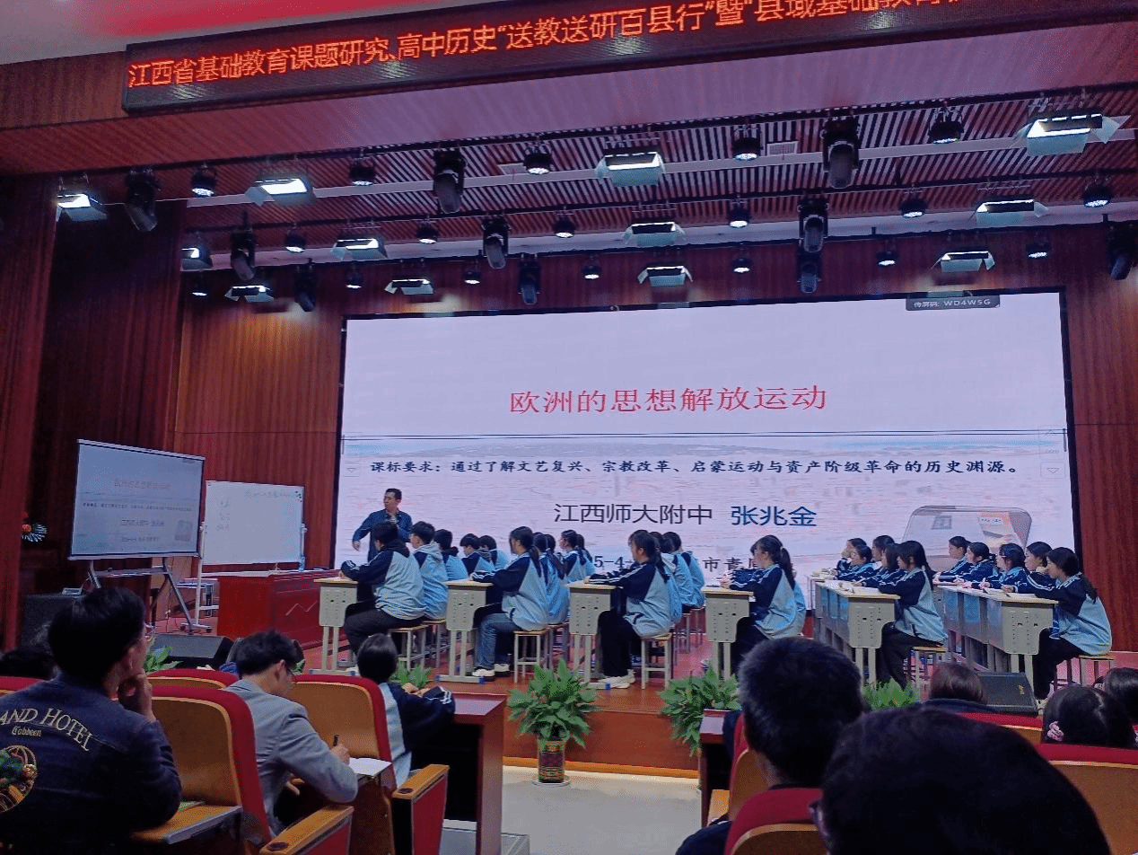 4月9日下午,人文学院23历史班全体同学在班主任曹万青的带领下,前往井大附中参加江西省基础教育课题研究、高中历史“送教送研百县行”暨“县域基础教育协同提质行动”活动。