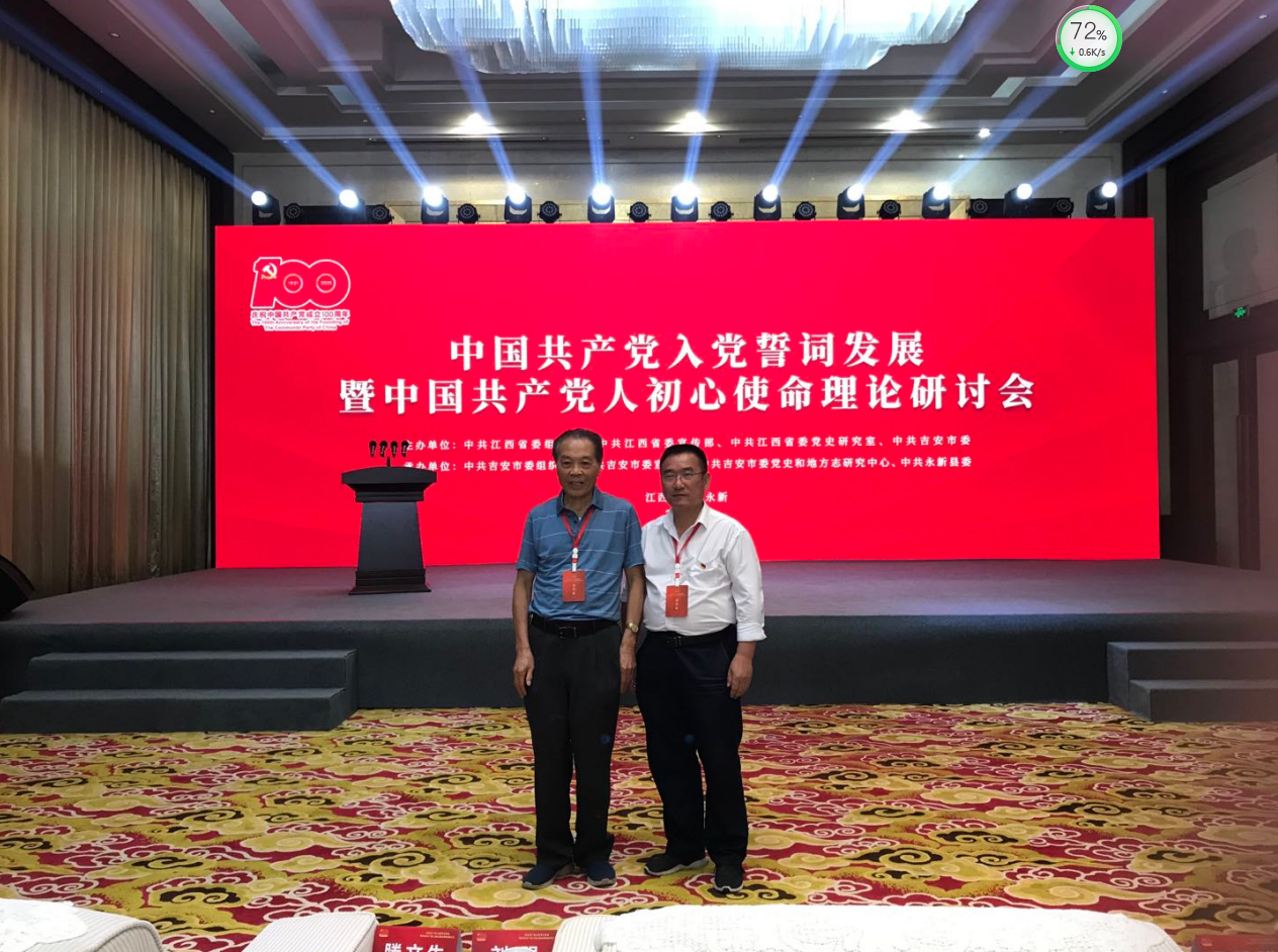 6月7日,由中共中央党史和文献研究院第七研究部指导,中共江西省委组织部、中共江西省委宣传部、中共江西省委党史研究室、中共吉安市委主办,中共吉安市委组织部、中共吉安市委宣传部、中共吉安市委党史和地方志研究中心、中共永新县委承办的中国共产党入党誓词发展暨中国共产党人初心使命理论研讨会在江西吉安永新县召开。贺页朵书写的24字入党誓词,是井冈山时期唯一保存下来的入党“宣誓书”,是我党现存最早的入党誓词。中共中央党史和文献研究院与中央“不忘初心、牢记使命”主题教育领导小组将其编入《见证初心和使命的“十一书”》第一书,上传“学习强国”网。此次研讨会被列入江西省庆祝建党100周年九大活动之一。研讨会主题为“誓言永恒,终生不渝”。来自全国各地领导专家、贺页朵后代等100余人出席会议。我院黄惠运教授应邀参会,递交《贺页朵书写的“入党宣誓书”的五大价值》论文,在大会交流。会议期间,参观瞻仰了贺页朵“入党誓词”纪念馆。