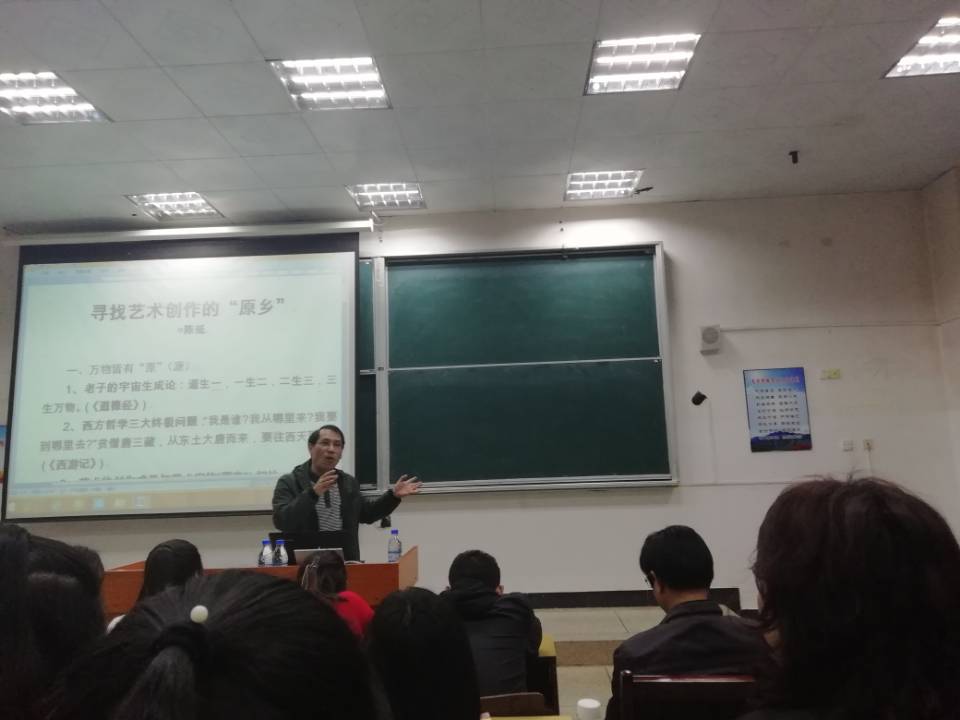 4月8号晚上,中国作家协会会员、南宁市作协副主席、《南宁日报》副刊主编陈大明(笔名陈纸)在五教105教室做了《寻找文学创作的“原乡”》的主题讲座,到场嘉宾有吉安市作协顾问胡刚毅诗人、市作协副主席张昱煜、市作协秘书长邓小川、副秘书长刘东生,吉州区作协主席秦宗梁,著名画家陈桂明,郑乃勇副教授等。此次讲座由人文学院主办、吉安市作协协办,人文学院副院长龚奎林主持,中文系16级、17级各班同学200余人参加。