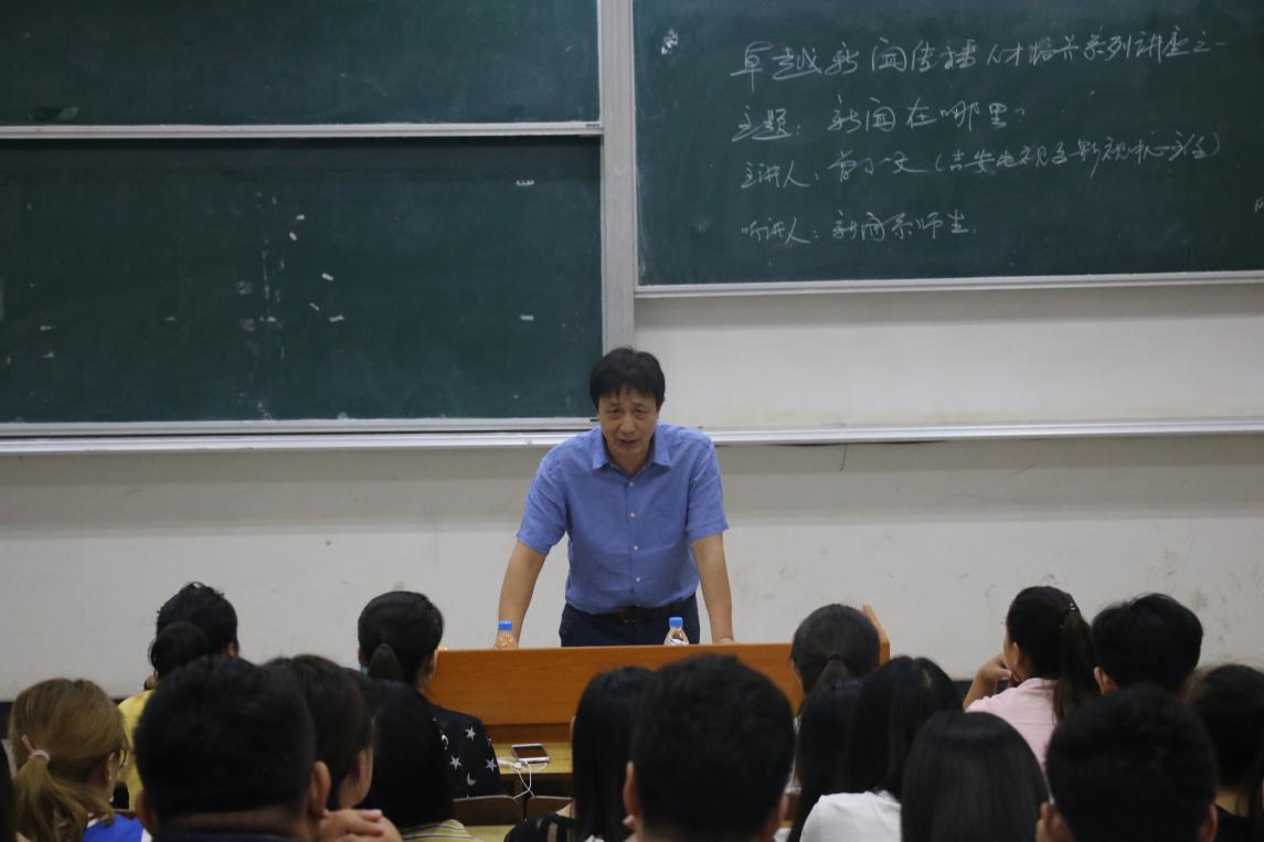 曾主任通过生动风趣的语言给同学们分享了自己在新闻工作当中积累的经验和新闻故事,并分析了许多“发现新闻”方面的实际操作案例。